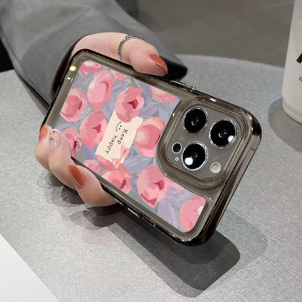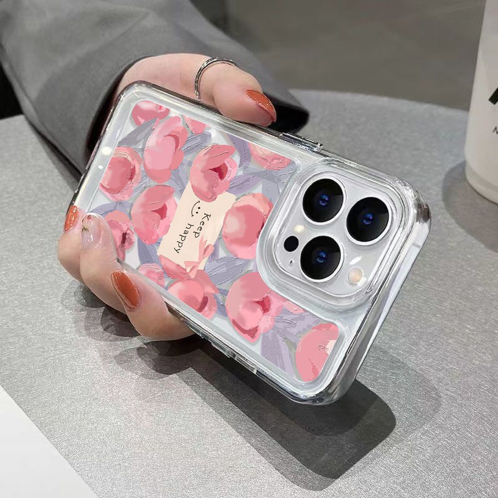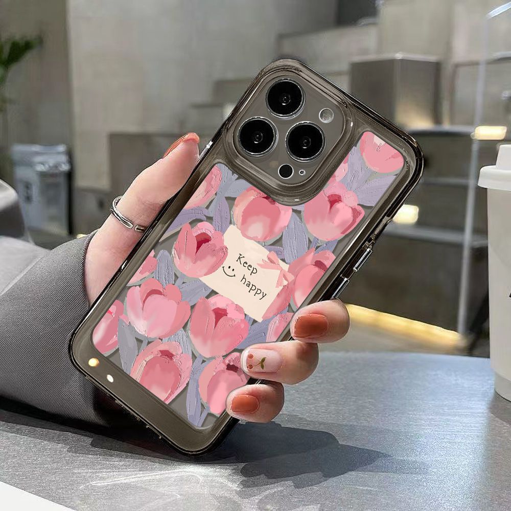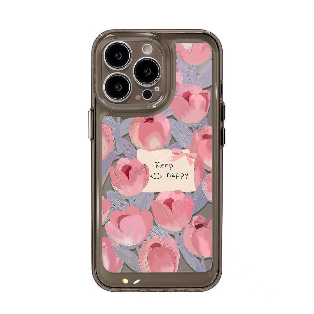 유화 튤립은 iPhone15 드롭 방지 전화 케이스 13Pro Apple 12/11 Simple 14 를 위해 행복하게 유지합니다.