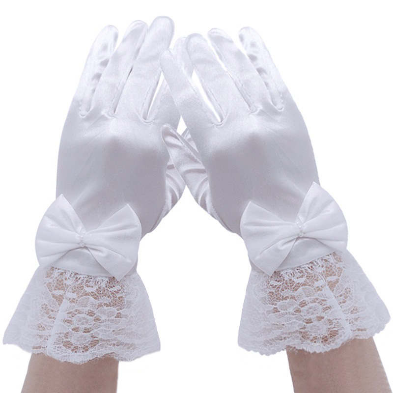 아기 장갑 신부 결혼식 꽃 소녀 활 레이스 짧은 손가락 새틴 학생 성능 어린이 장갑