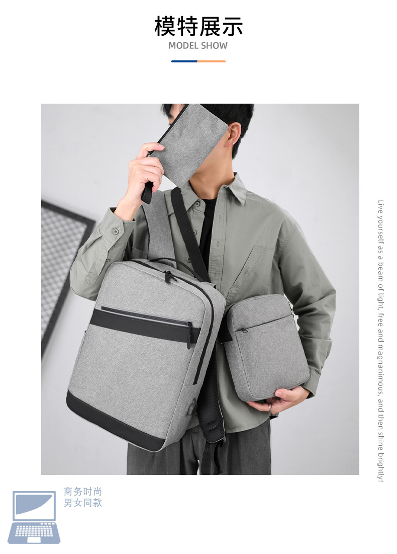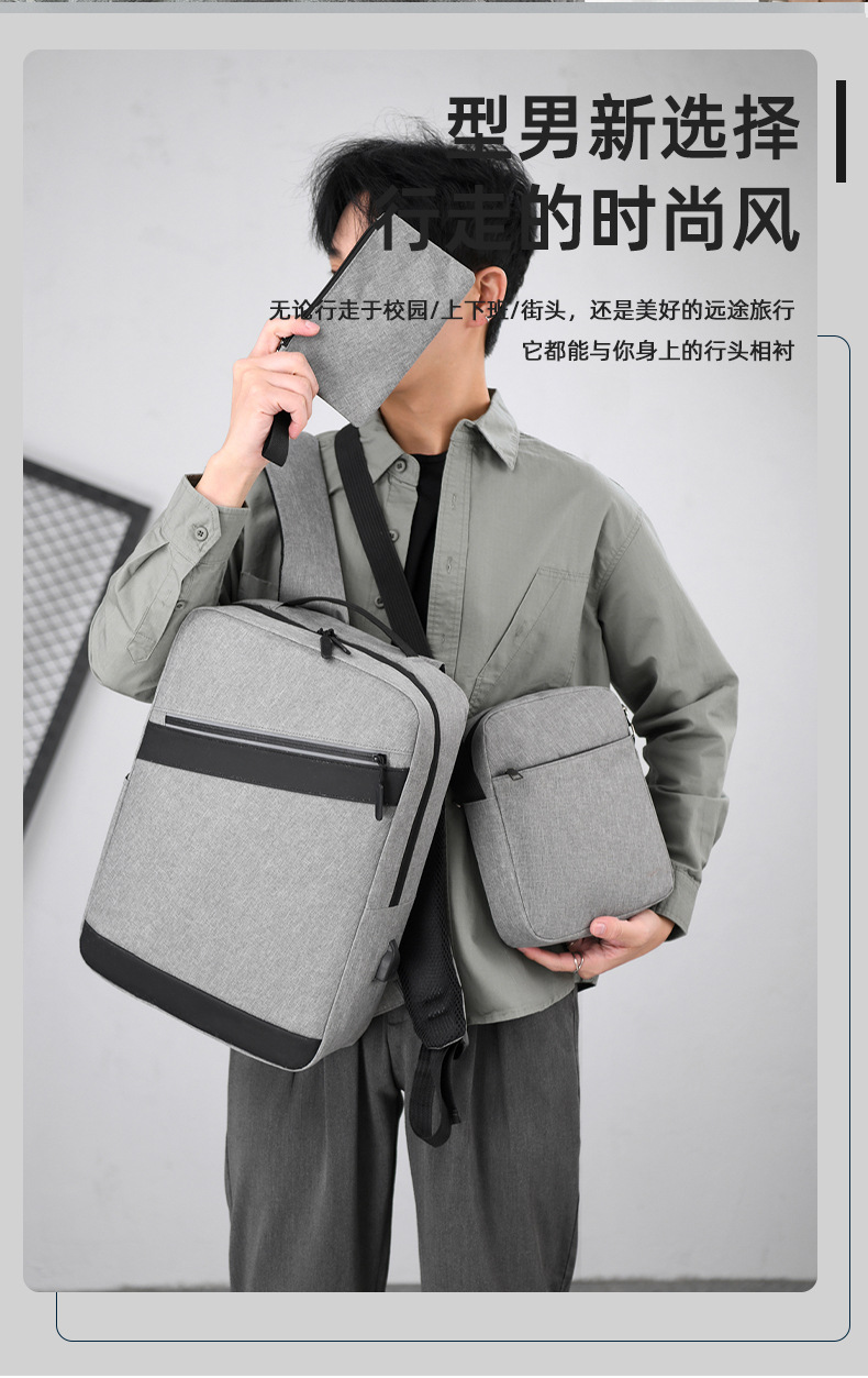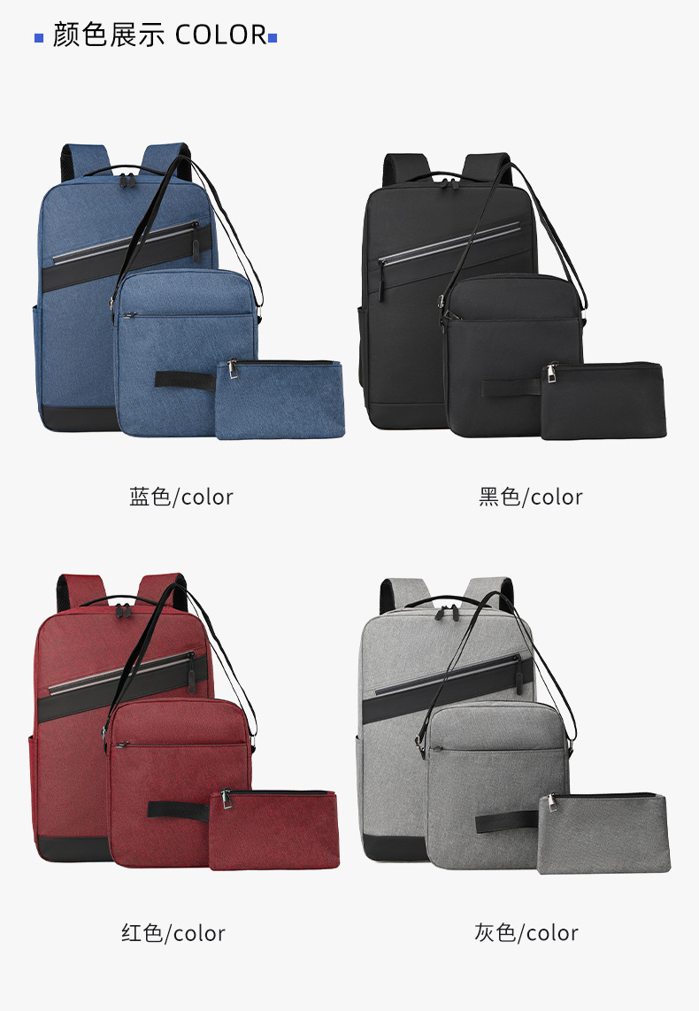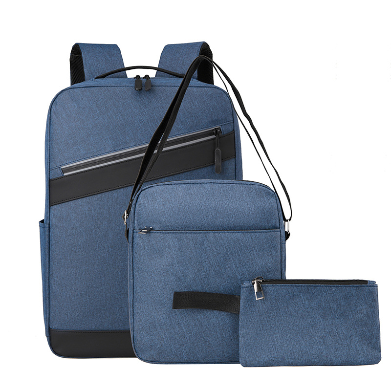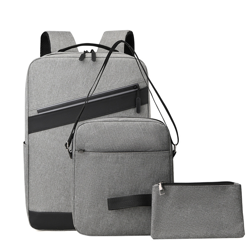 비즈니스 통근 3 피스 배낭 남성 대용량 스티칭 학생 스쿨백 간단한 패션 컴퓨터 가방 인쇄 로고