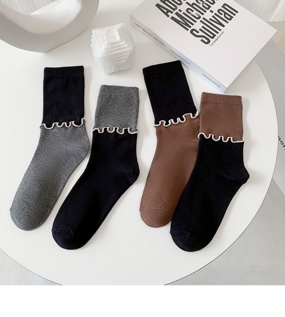 봄과 여름 나무 귀 양말 여성 AB 비대칭 색상 일치 일본 순수한면 패션 성격 디자인 튜브 양말스토어 가기