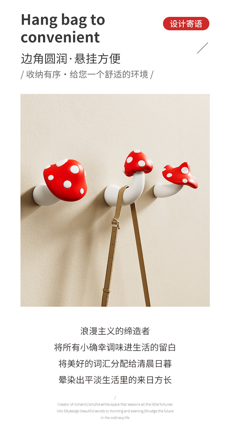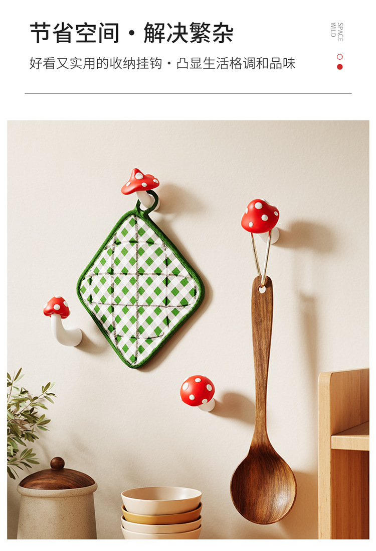창의적이고 귀여운 버섯 후크, 흔적 없음, 펀칭 없음, 접착 후크, 입구 문, 현관 열쇠, 벽 코트 후크 보관함