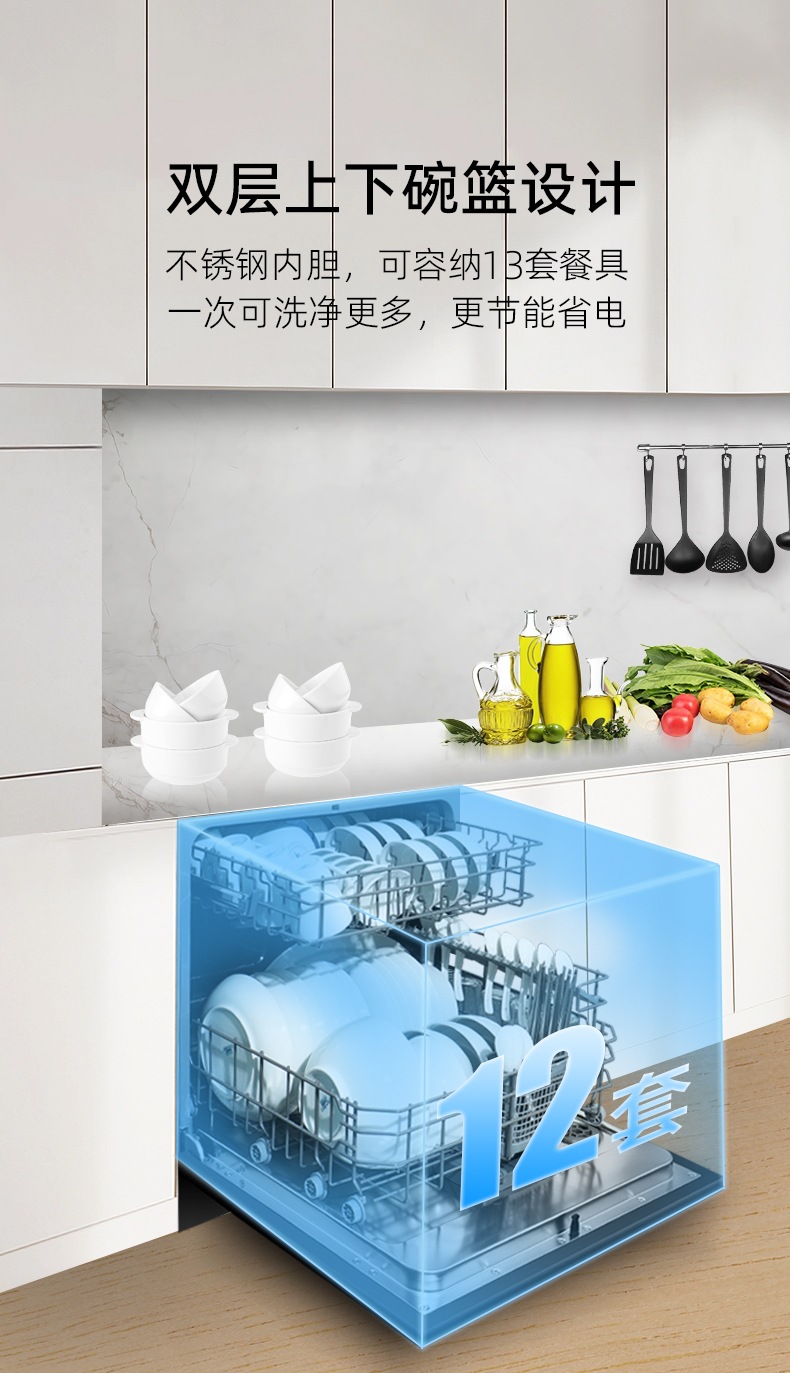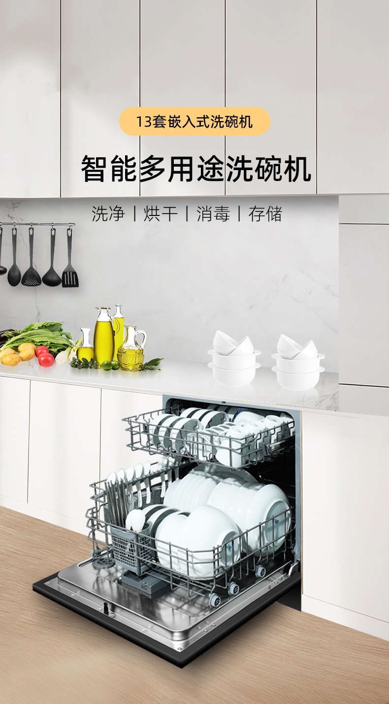 내장 식기 세척기 가정용 부엌의 수출 영어 버전 대용량 더블 스프레이 뜨거운 공기 건조 대외 무역을위한 요리 13 세트스토어 가기