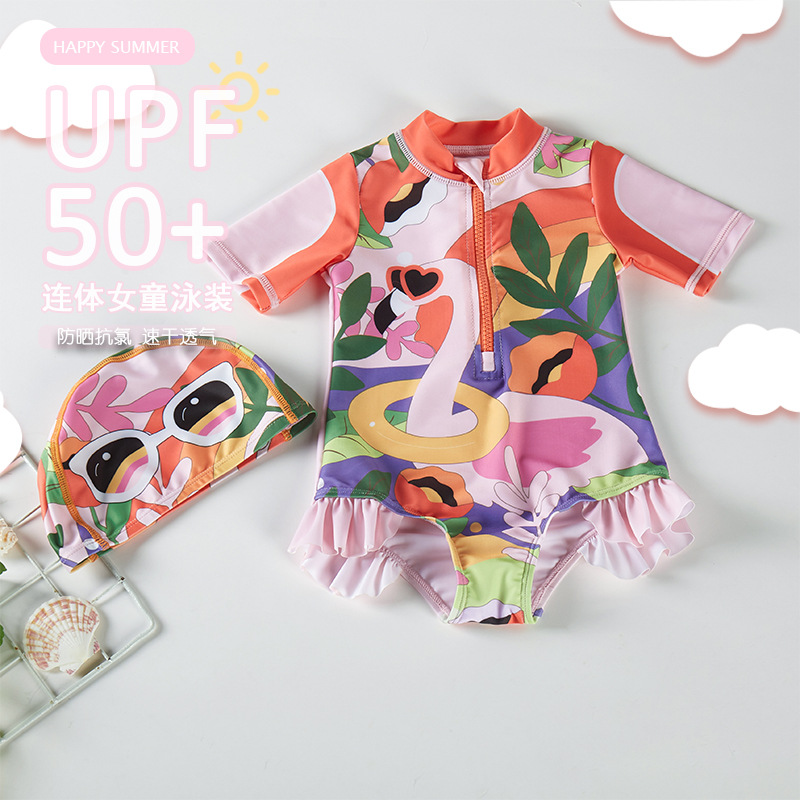 어린이 수영복 원피스 서퍼 세트 공연 의류 태양 방지 빠른 건조 통기성 귀여운 해변 소녀 수영 트렁크 2024 새로운스토어 가기