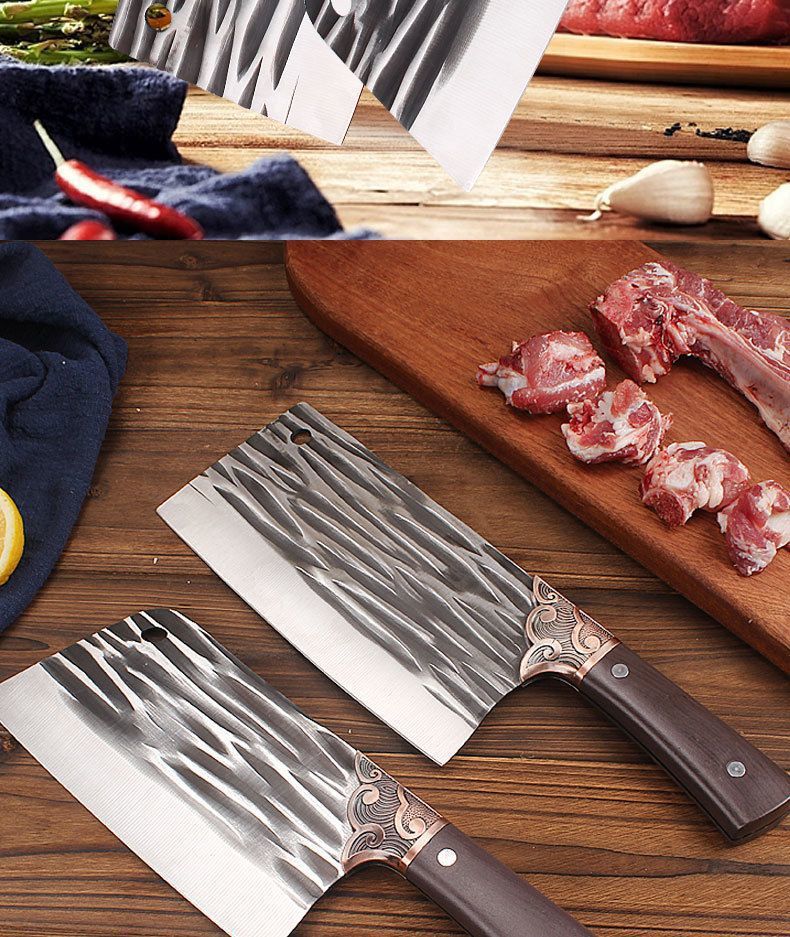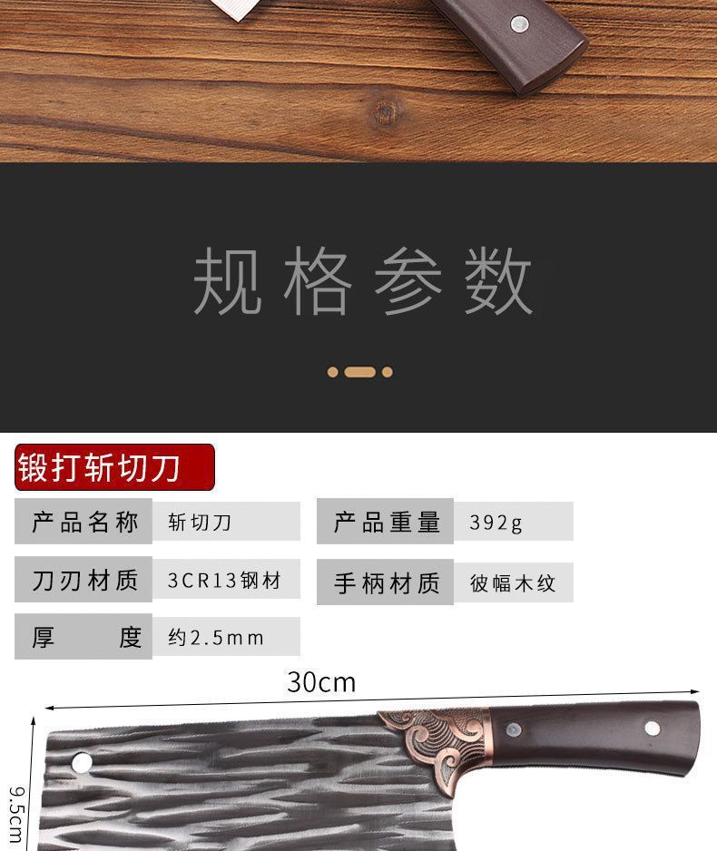 • 620g 나무 손잡이 가로 무늬 뼈 도마 칼
