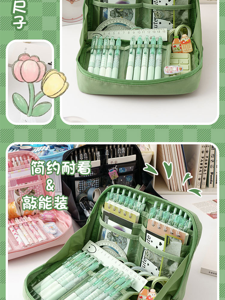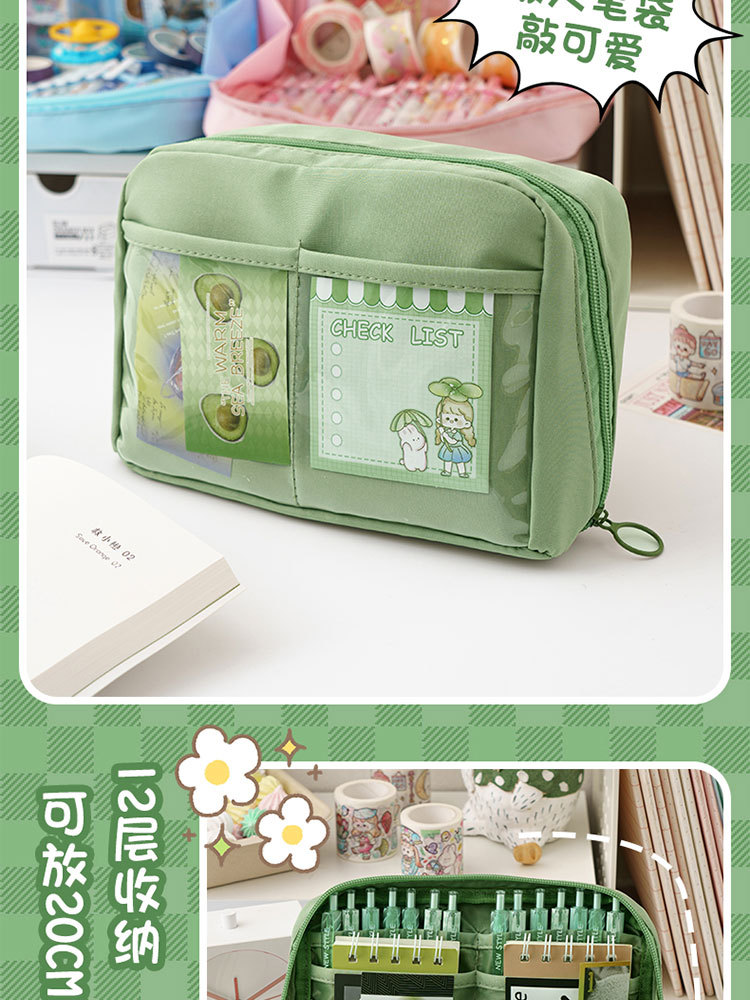 여학생 초등학생을위한 대용량 연필 가방 멀티 레이어 Ins 일본식 고가치 문구 가방 중학생 연필 케이스스토어 가기