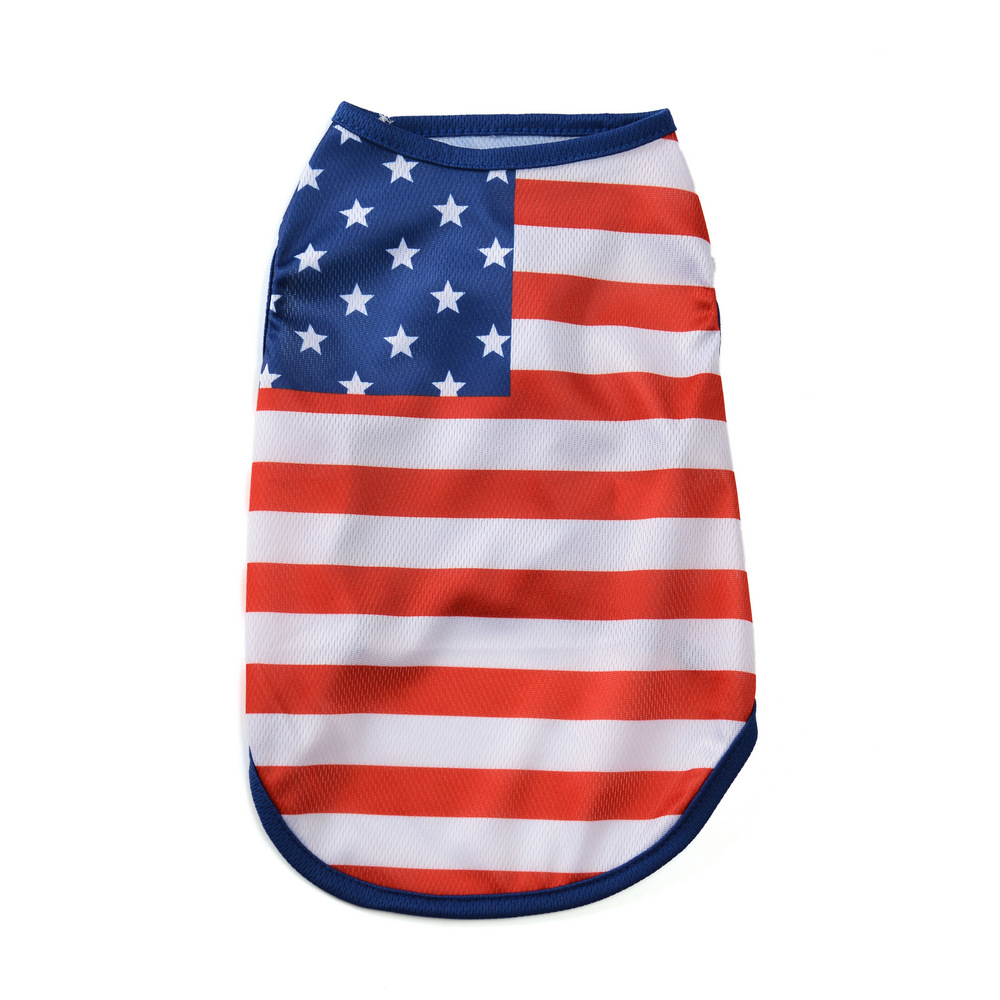 애완견 옷, 얇고 통기성이 좋은 프린트 조끼, 강아지와 고양이 의류, 유럽과 미국의 독립 기념일 국경 간 핫 스타일스토어 가기
