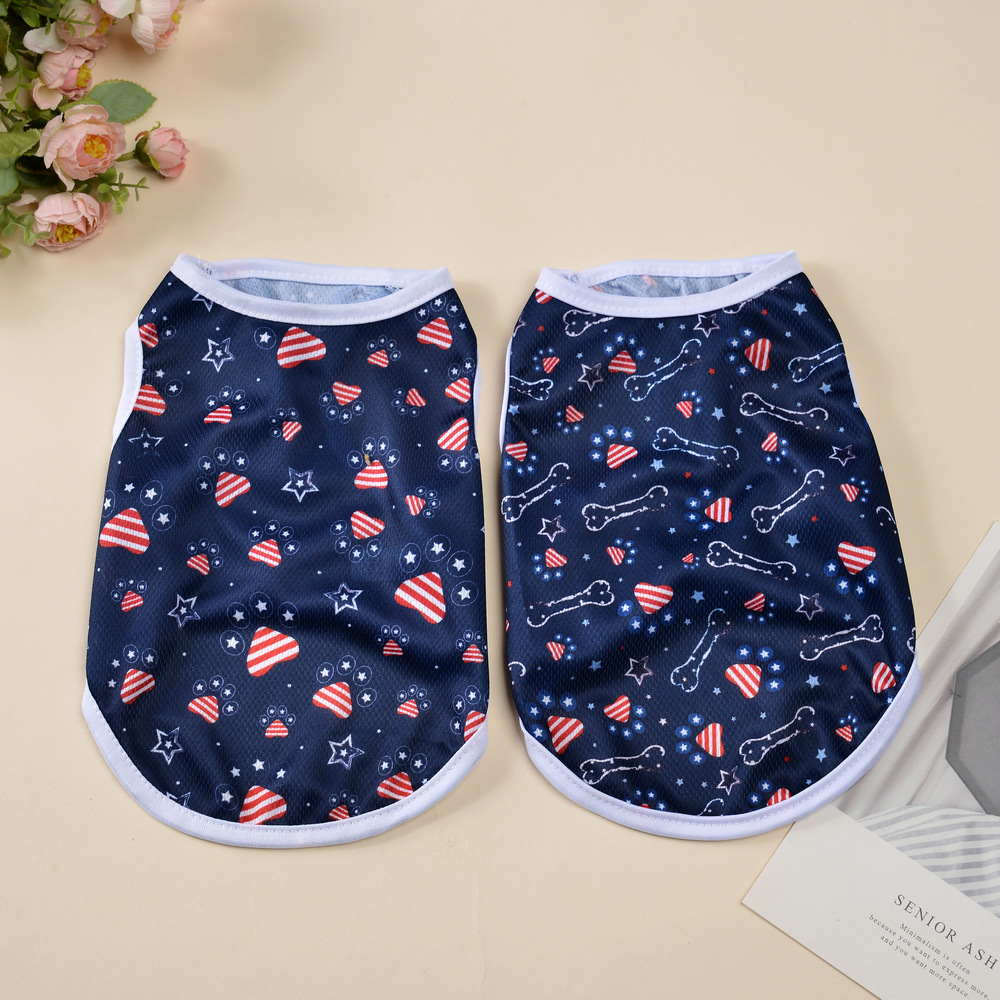 애완견 옷, 얇고 통기성이 좋은 프린트 조끼, 강아지와 고양이 의류, 유럽과 미국의 독립 기념일 국경 간 핫 스타일