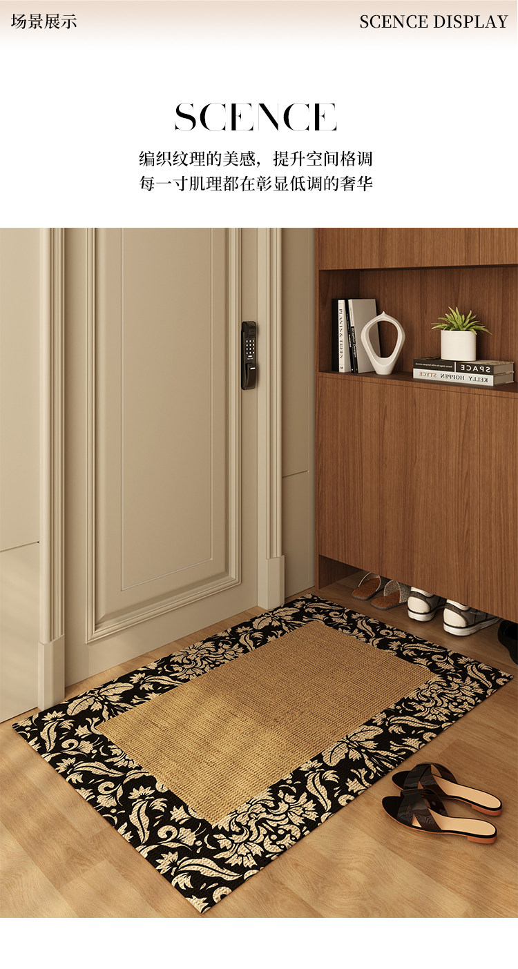 새로운 중국 스타일 린넨 입구 매트 문 비 슬립 레트로 문 입구 입구 복도 문지름