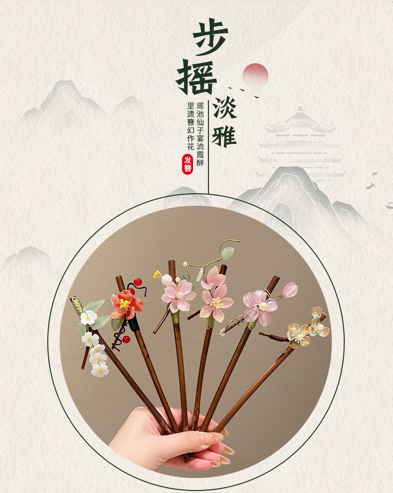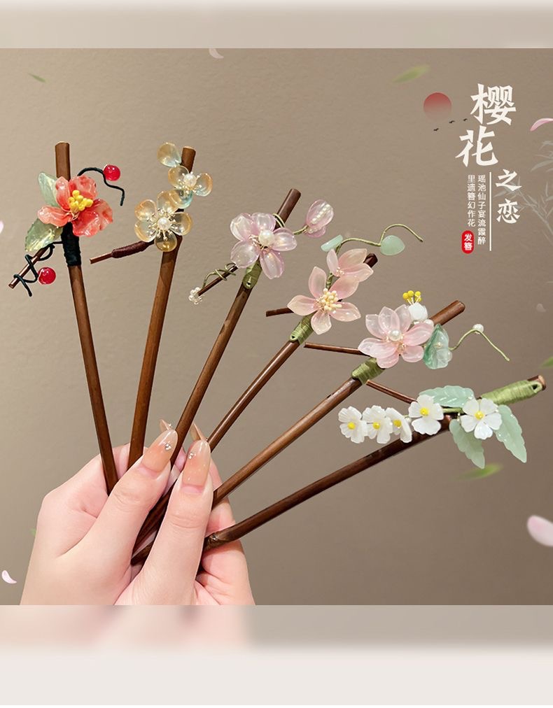 골동품 머리핀 여성의 새로운 중국 술 단계 쉐이크 헤어핀 탄화 대나무 머리 디스크 머리 한 옷 고대 옷 머리 풀 머리핀스토어 가기