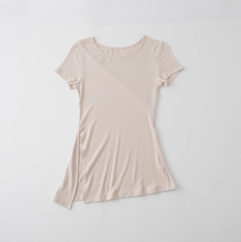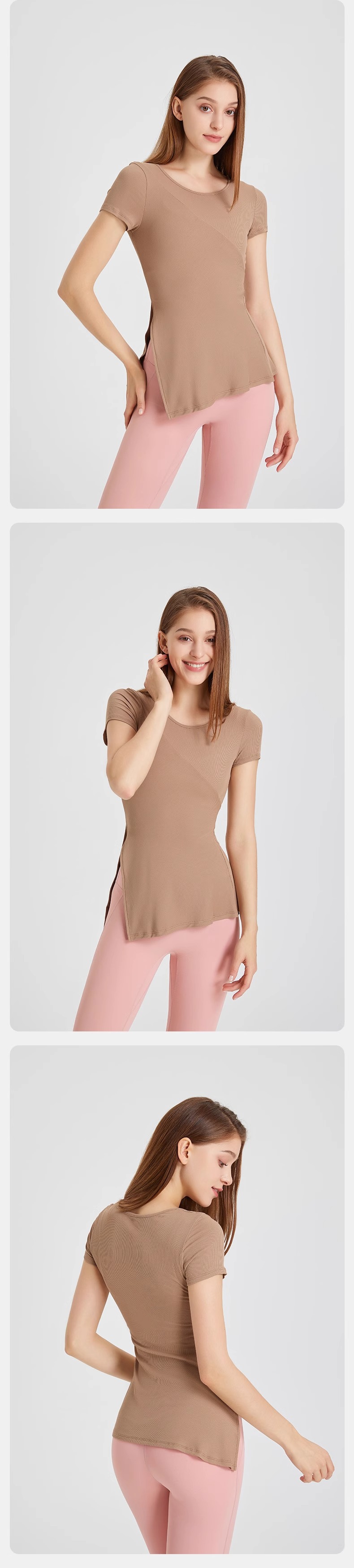 스포츠 반팔 티셔츠 스플릿 여성용 슬림 핏 슬리밍 퀵 드라이 통기성 피트니스 의류 요가 탑 패션 반소매 여름스토어 가기