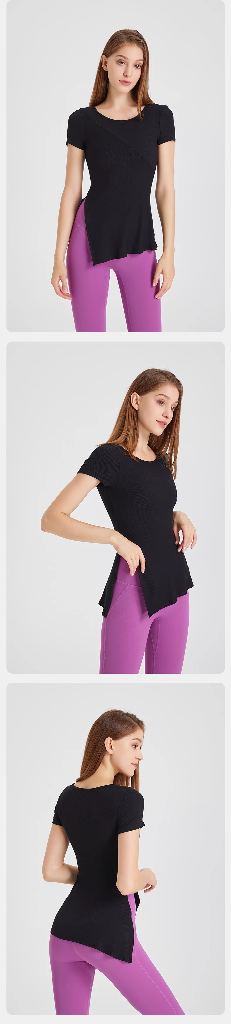 스포츠 반팔 티셔츠 스플릿 여성용 슬림 핏 슬리밍 퀵 드라이 통기성 피트니스 의류 요가 탑 패션 반소매 여름