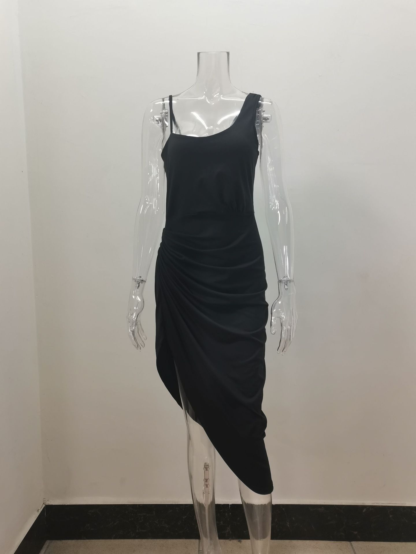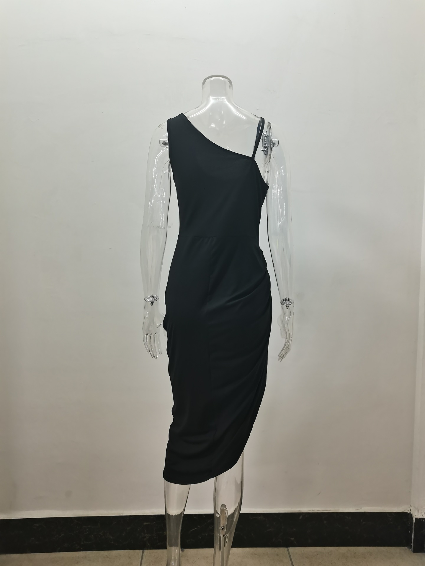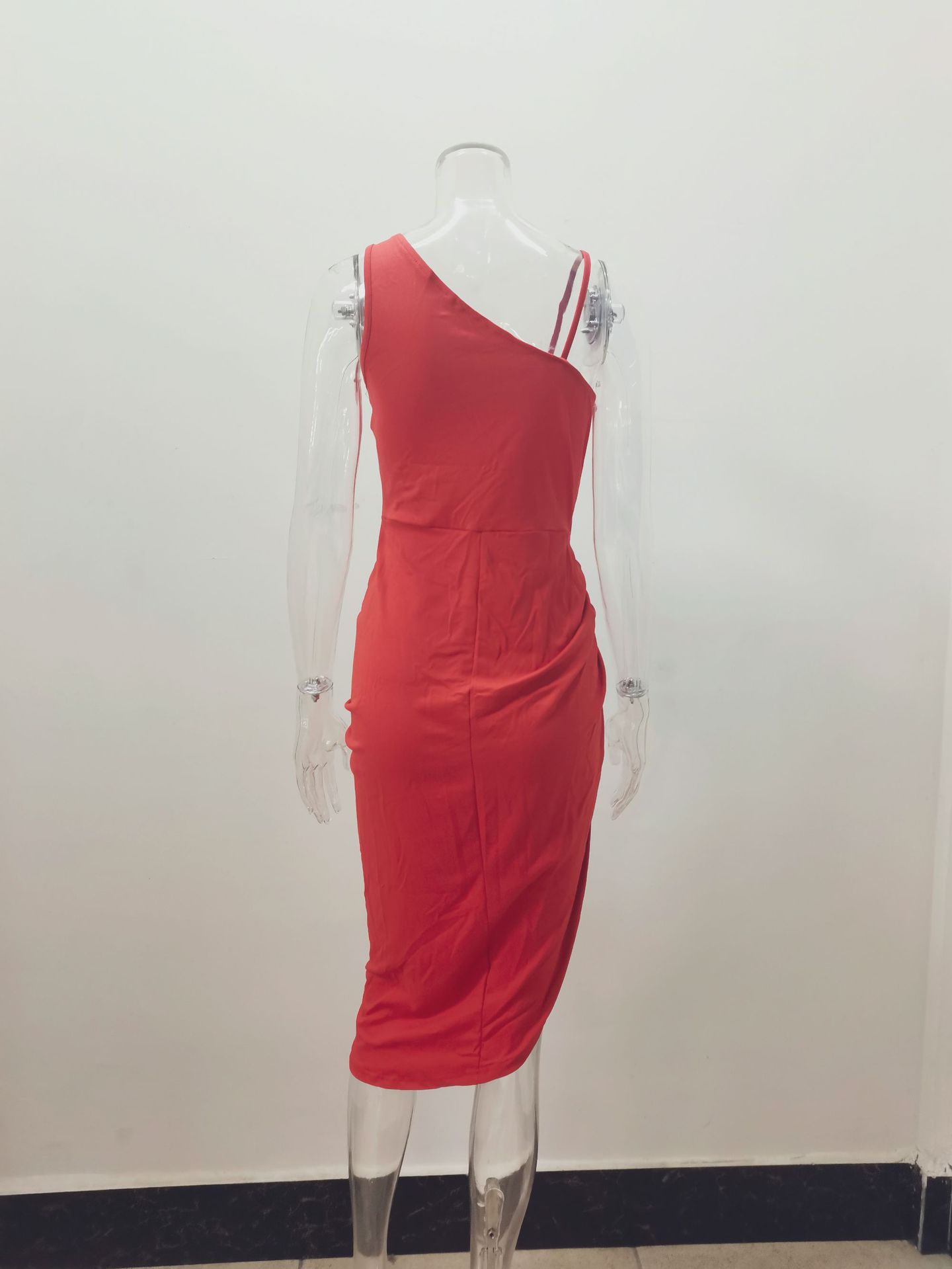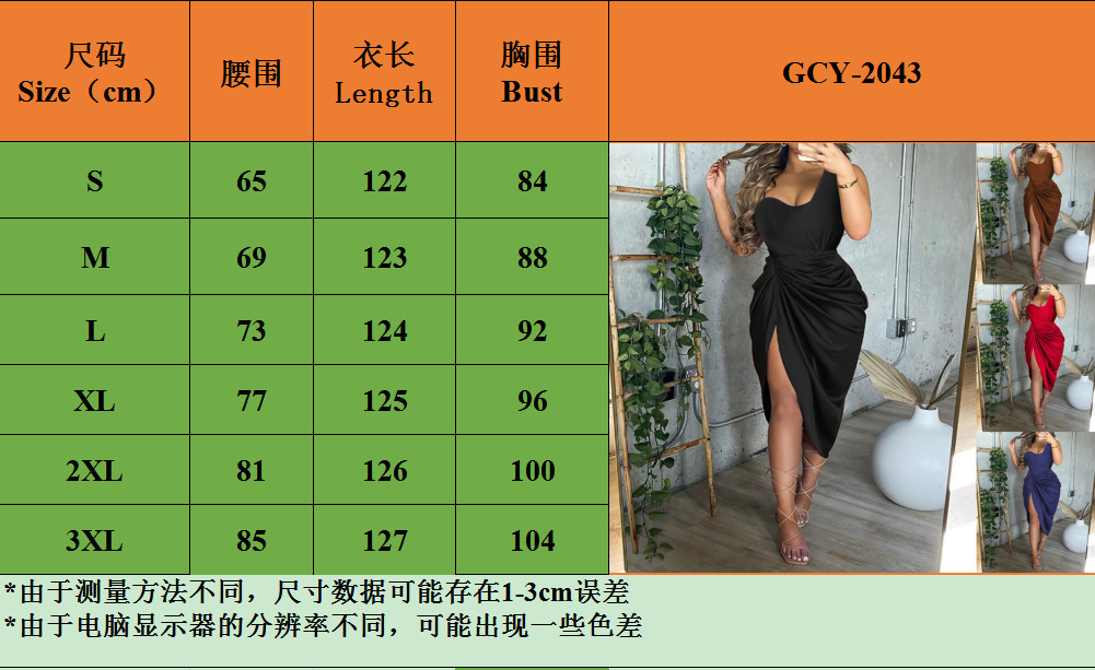 2024 아마존 위시 크로스 보더 여성 솔리드 컬러 섹시 스플릿 맥시 스커트 주름 어깨 저녁 원피스 여성스토어 가기