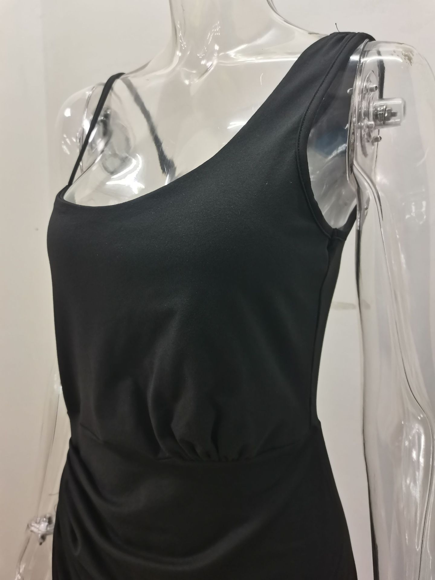 2024 아마존 위시 크로스 보더 여성 솔리드 컬러 섹시 스플릿 맥시 스커트 주름 어깨 저녁 원피스 여성
