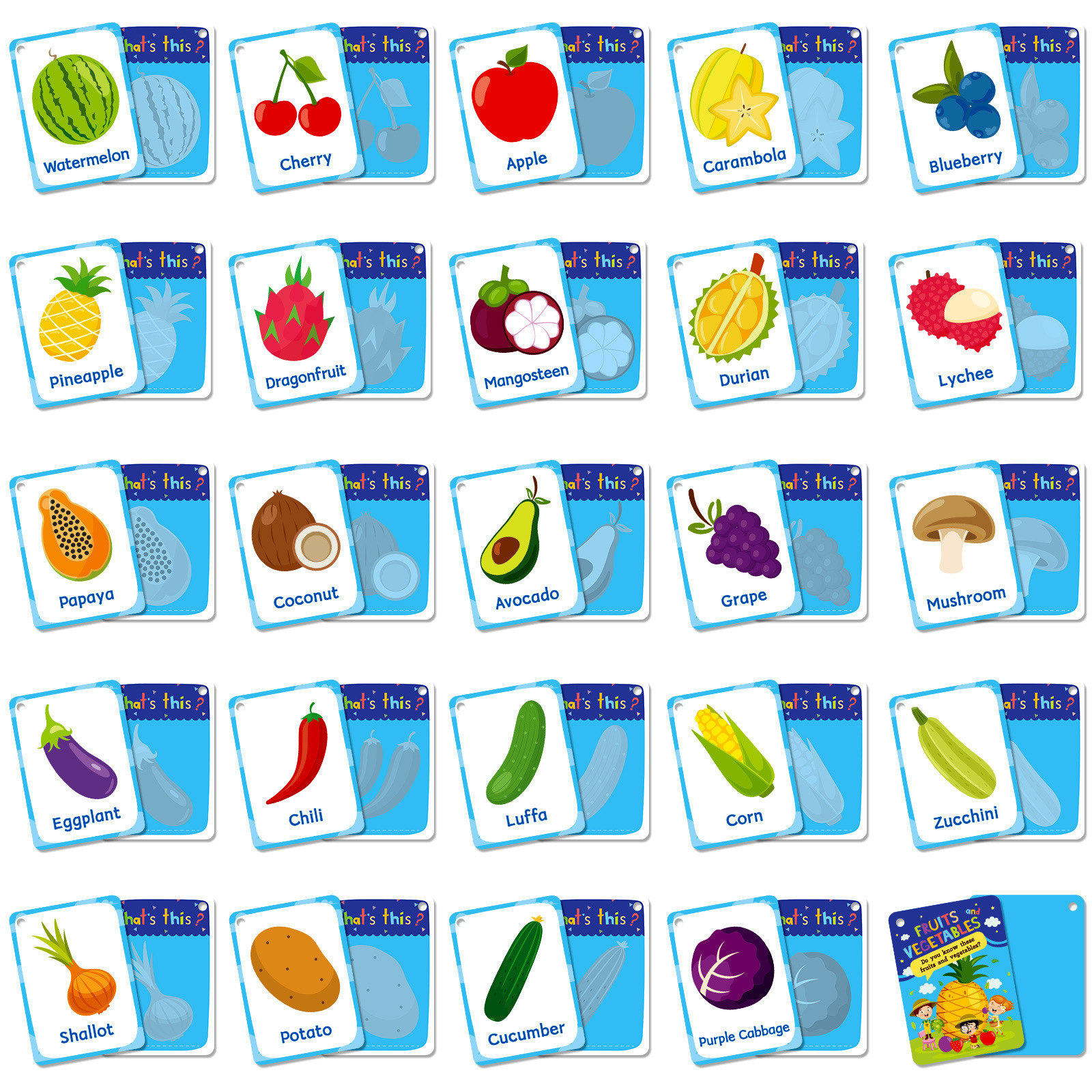 【일괄가격】46장 과일 및 채소 인지 카드, 해외 부모-자녀 상호작용 어린이 조기 교육 카드스토어 가기