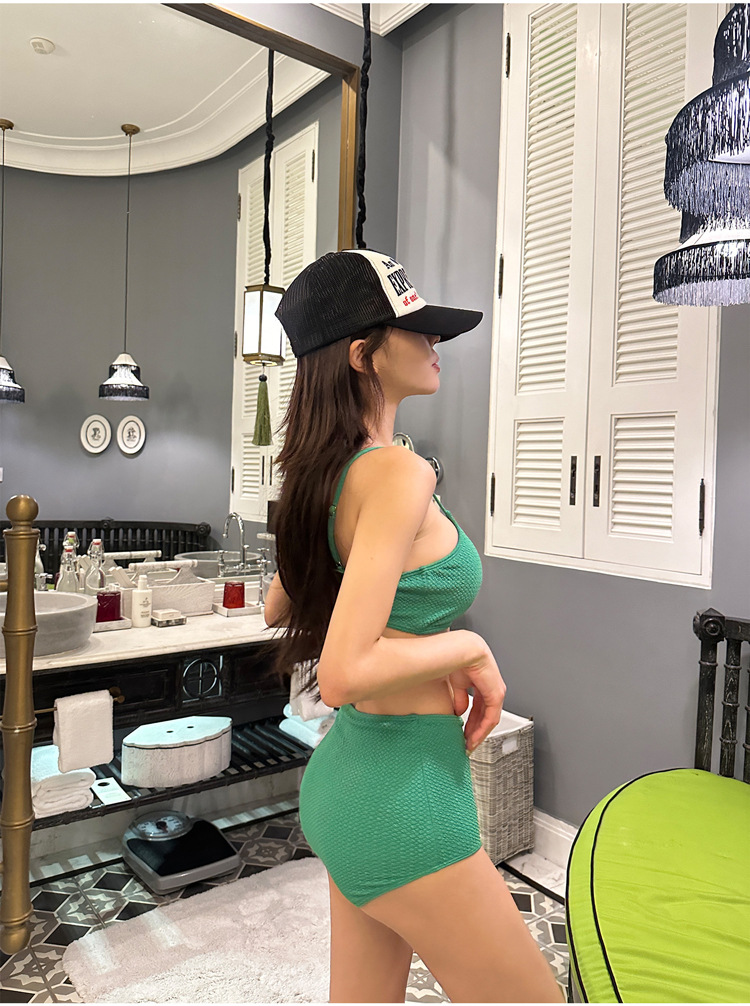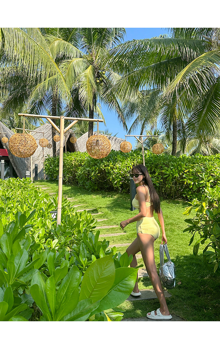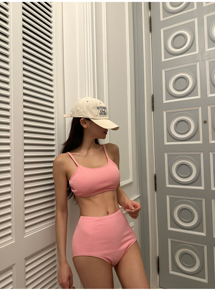 소스 공장 솔리드 컬러 화이트 하이 허리 타이트 슬림 스트랩 개더 보수적 인 소녀 스파 휴일 분할 수영복스토어 가기