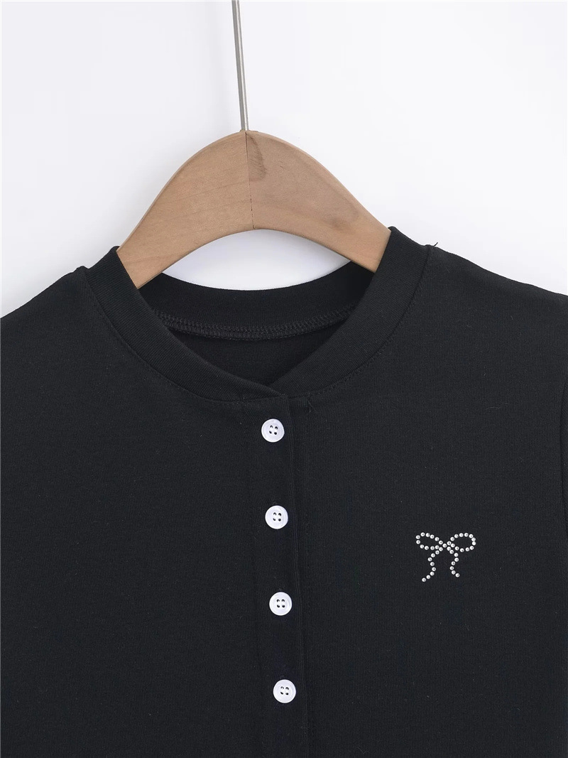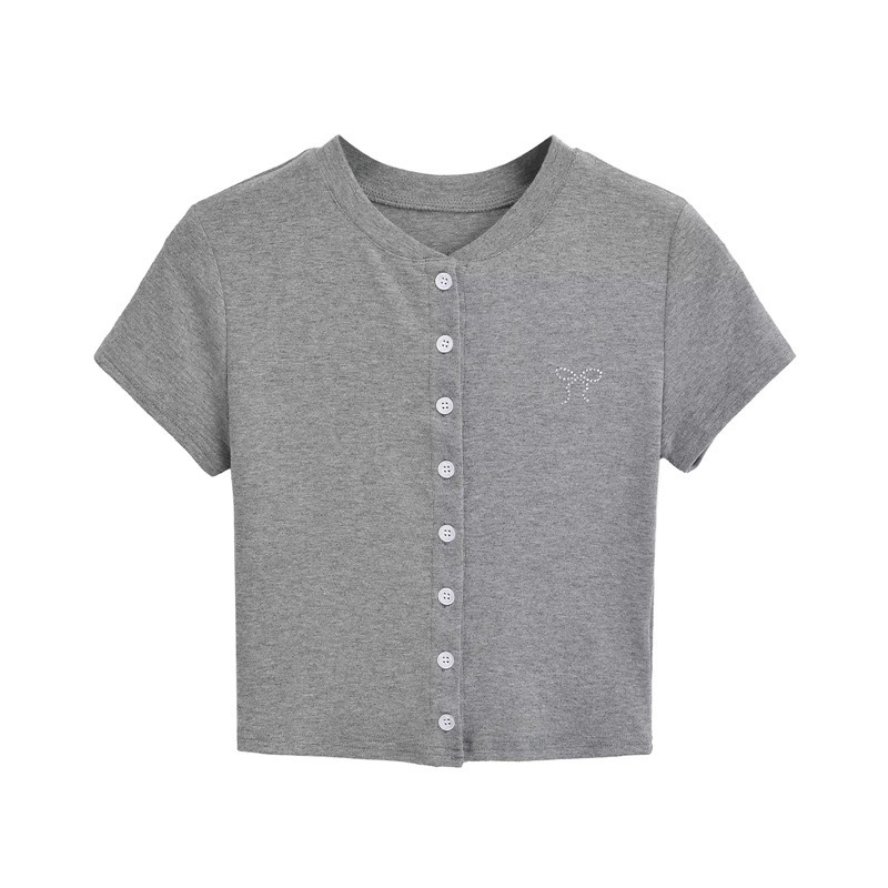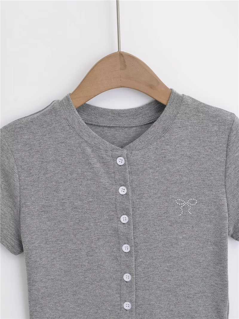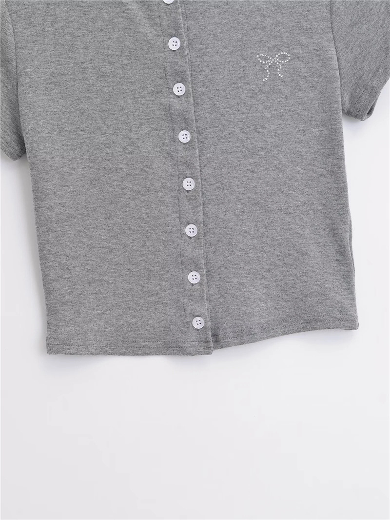 아메리칸 스타일 핫 라인스톤 라운드 넥 싱글 브레스트 하이 웨이스트 배벨 반팔 티셔츠 카디건 레이스 스티칭 플레어 바지 스파이스 걸스 세트