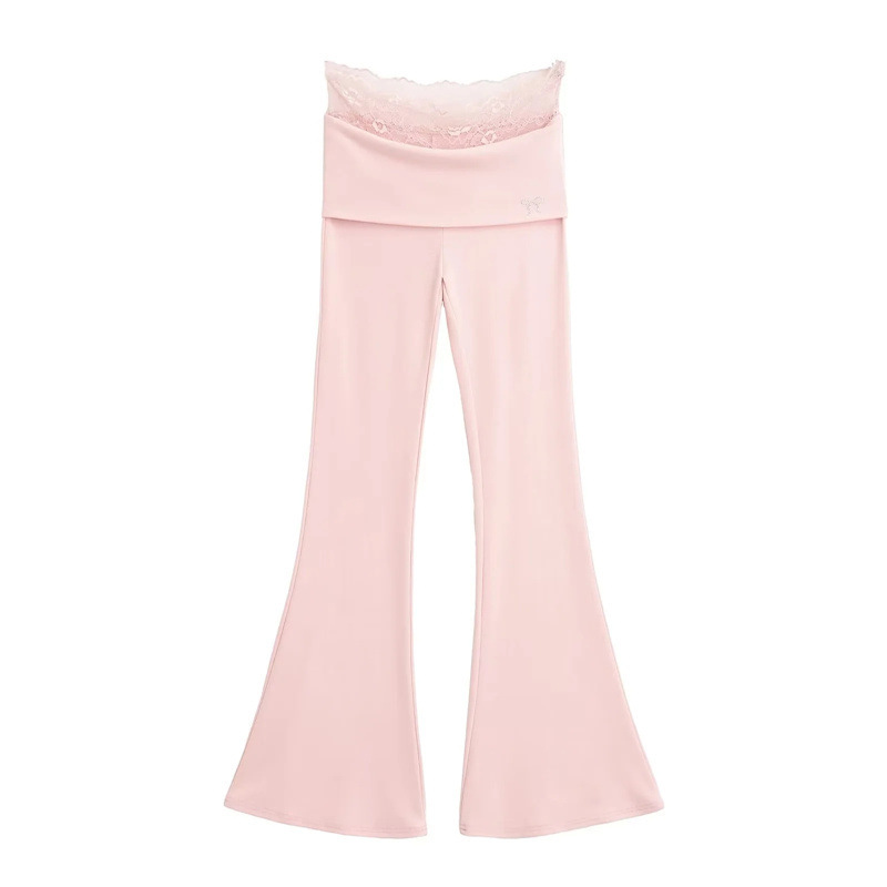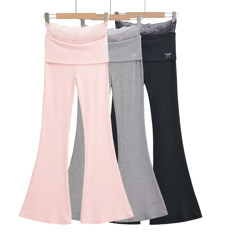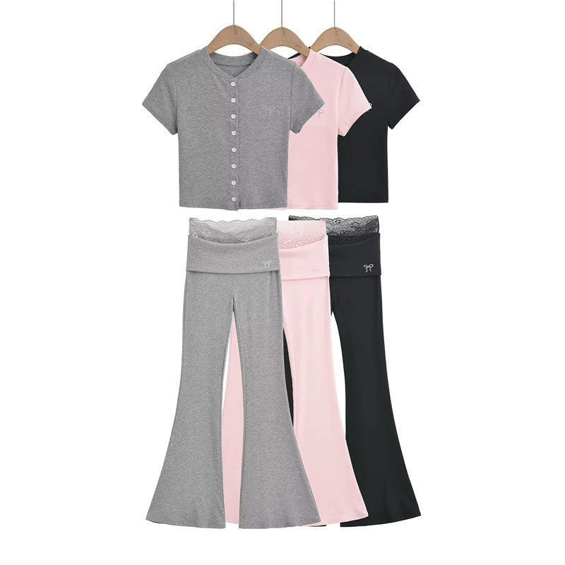 아메리칸 스타일 핫 라인스톤 라운드 넥 싱글 브레스트 하이 웨이스트 배벨 반팔 티셔츠 카디건 레이스 스티칭 플레어 바지 스파이스 걸스 세트스토어 가기