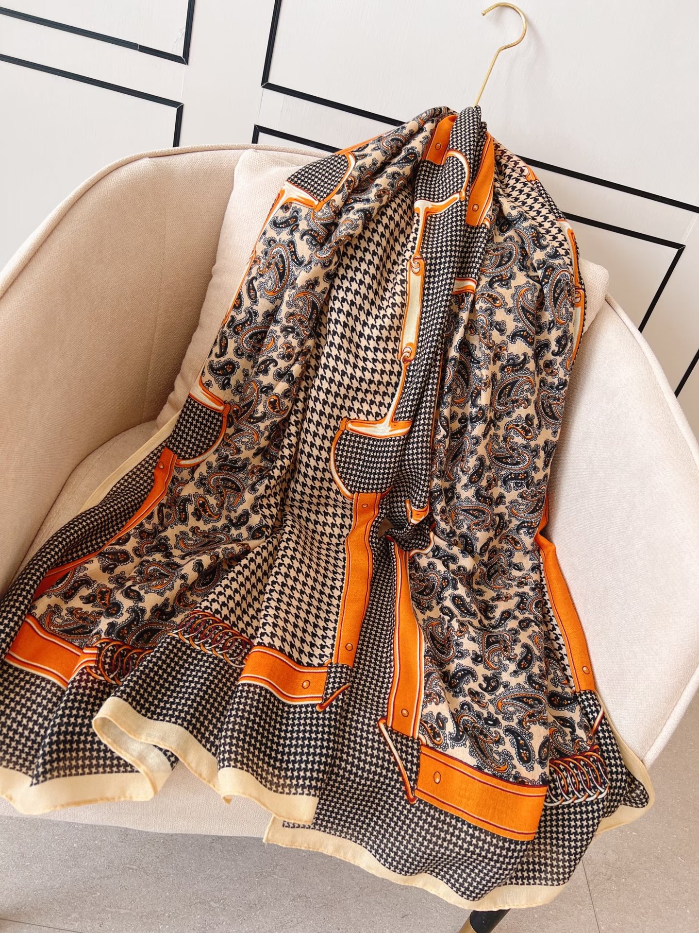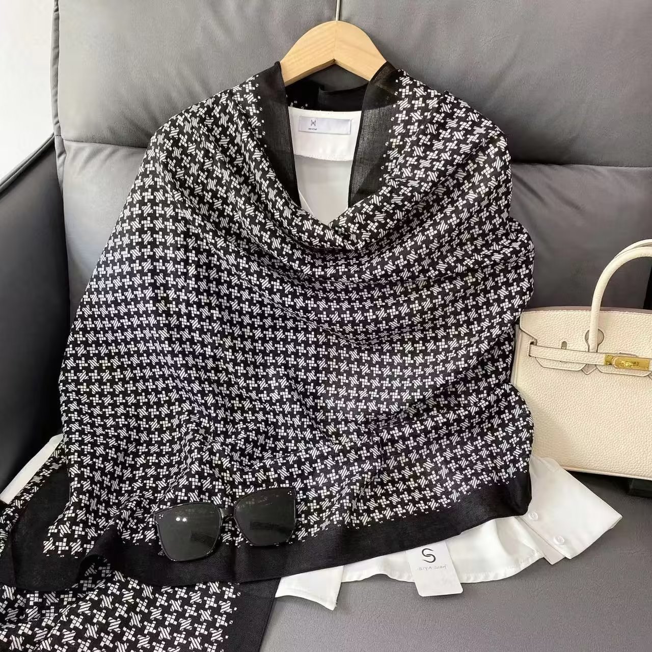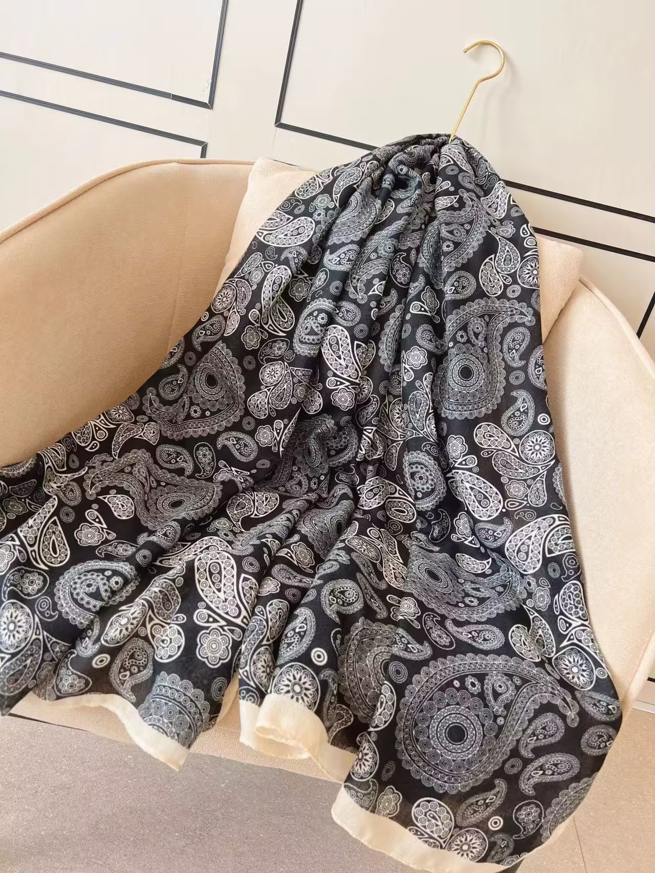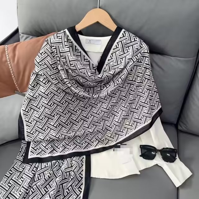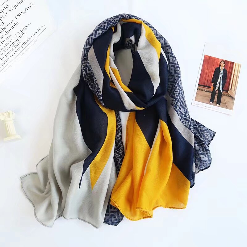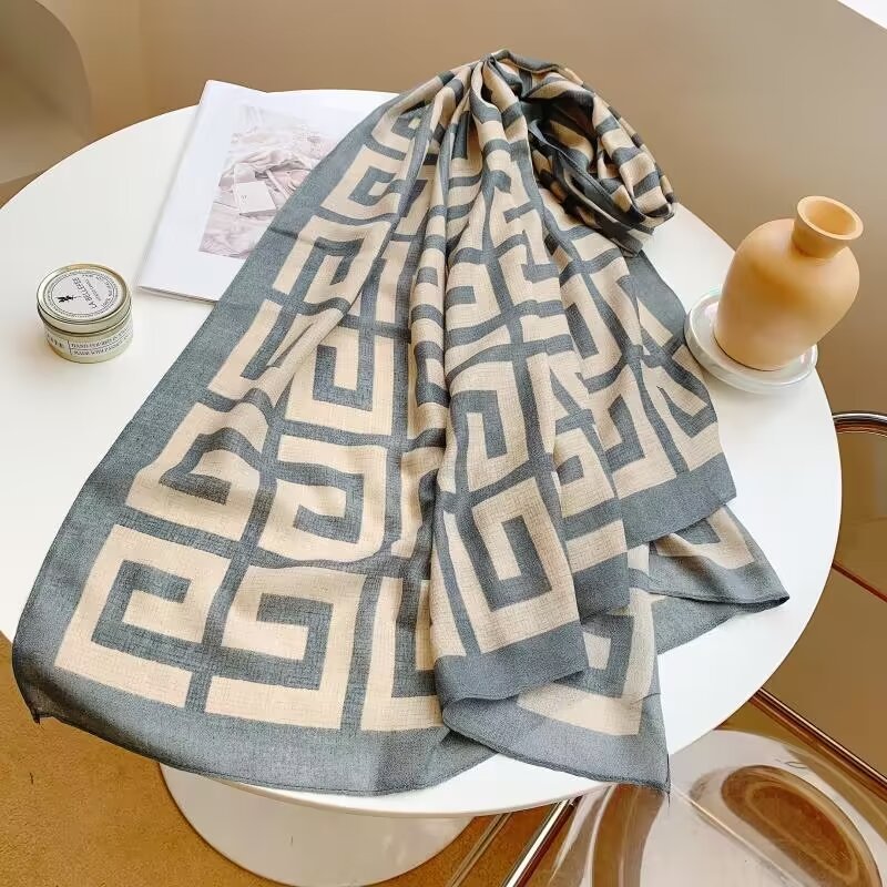얇은 면 및 린넨 스카프, 유럽과 미국의 유명 프린트 면 및 린넨 거즈 스카프, 일반 클래식 스타일 터번, 국경 숄 도매
