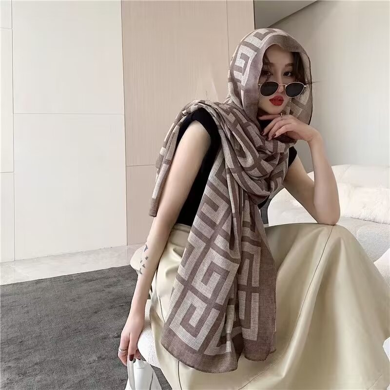 얇은 면 및 린넨 스카프, 유럽과 미국의 유명 프린트 면 및 린넨 거즈 스카프, 일반 클래식 스타일 터번, 국경 숄 도매스토어 가기