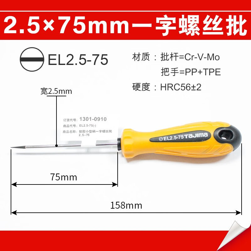 TaJIma 스크루 드라이버 플랫 매화 스크류 드라이버 고무 핸들 EL 시리즈 마그네틱 드라이버 2 색 핸들 마그네틱스토어 가기