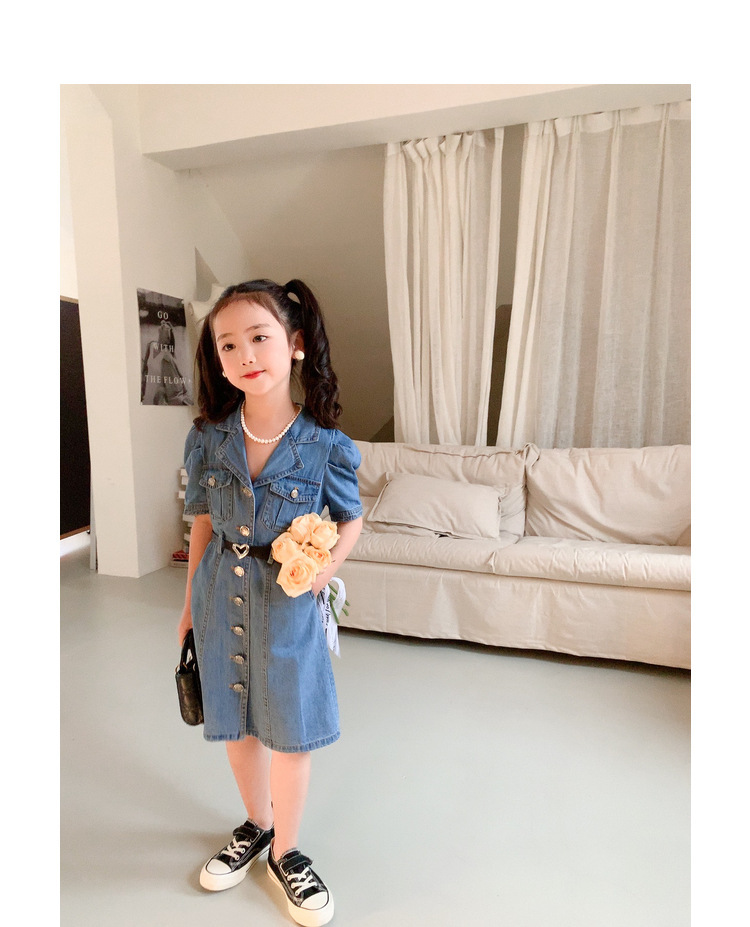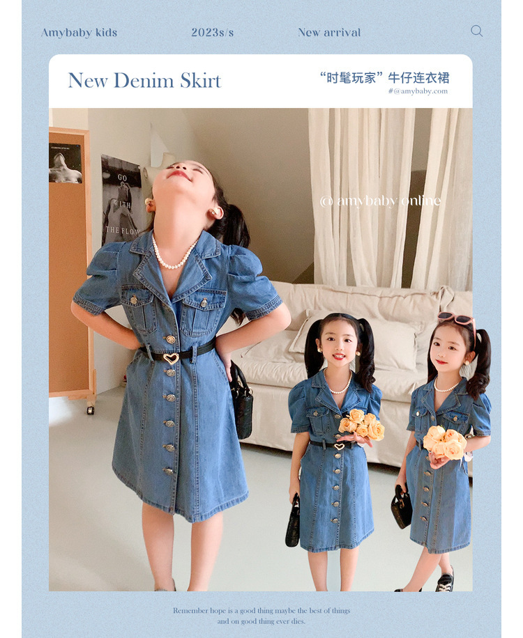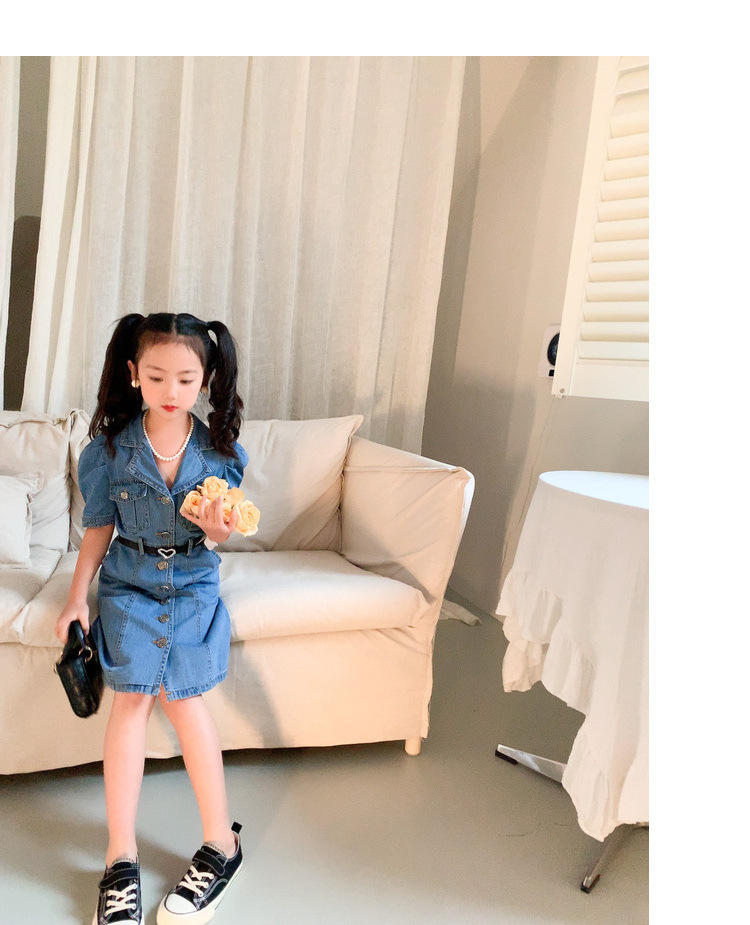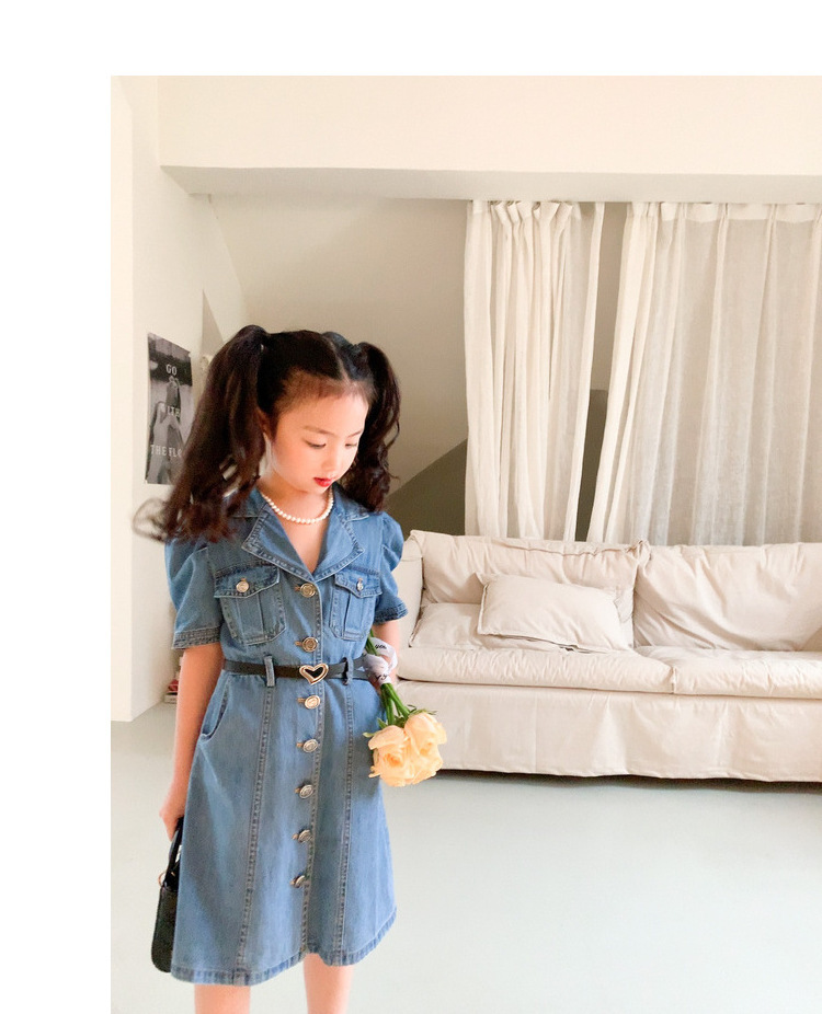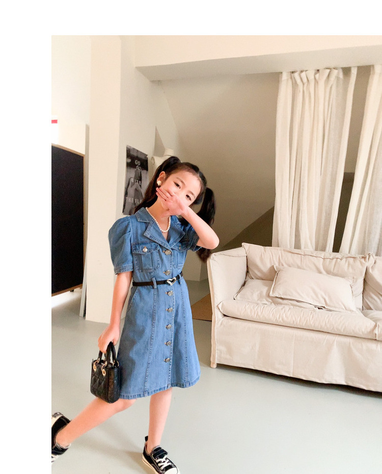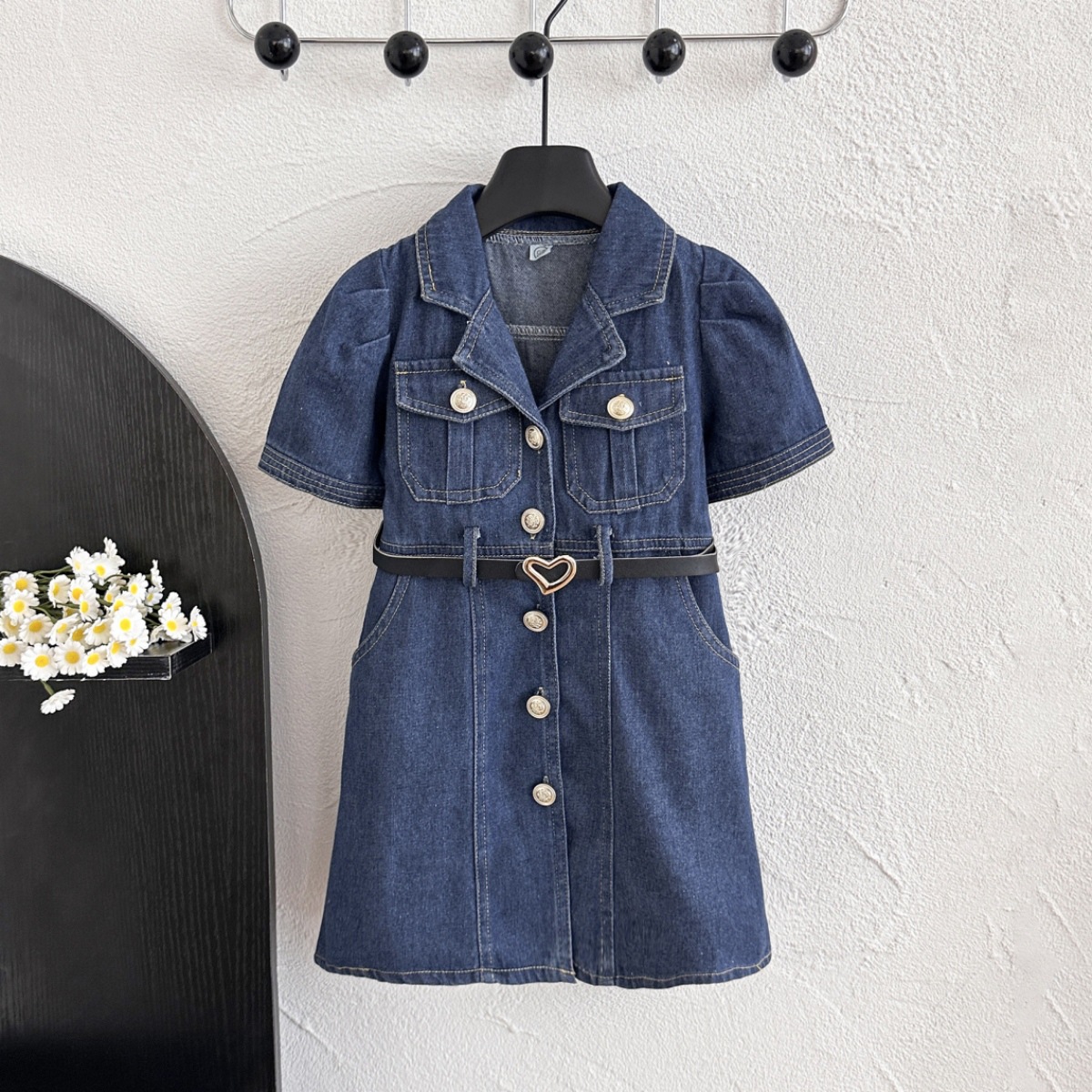 77271 여자 데님 원피스 2024 새로운 여름 얇은 데님 기질 레트로 올 매치 원피스