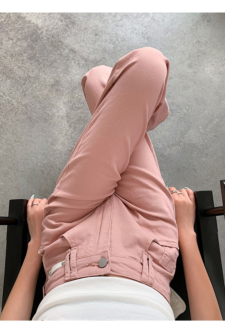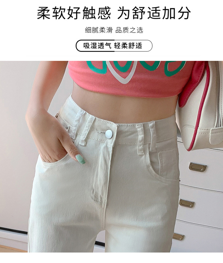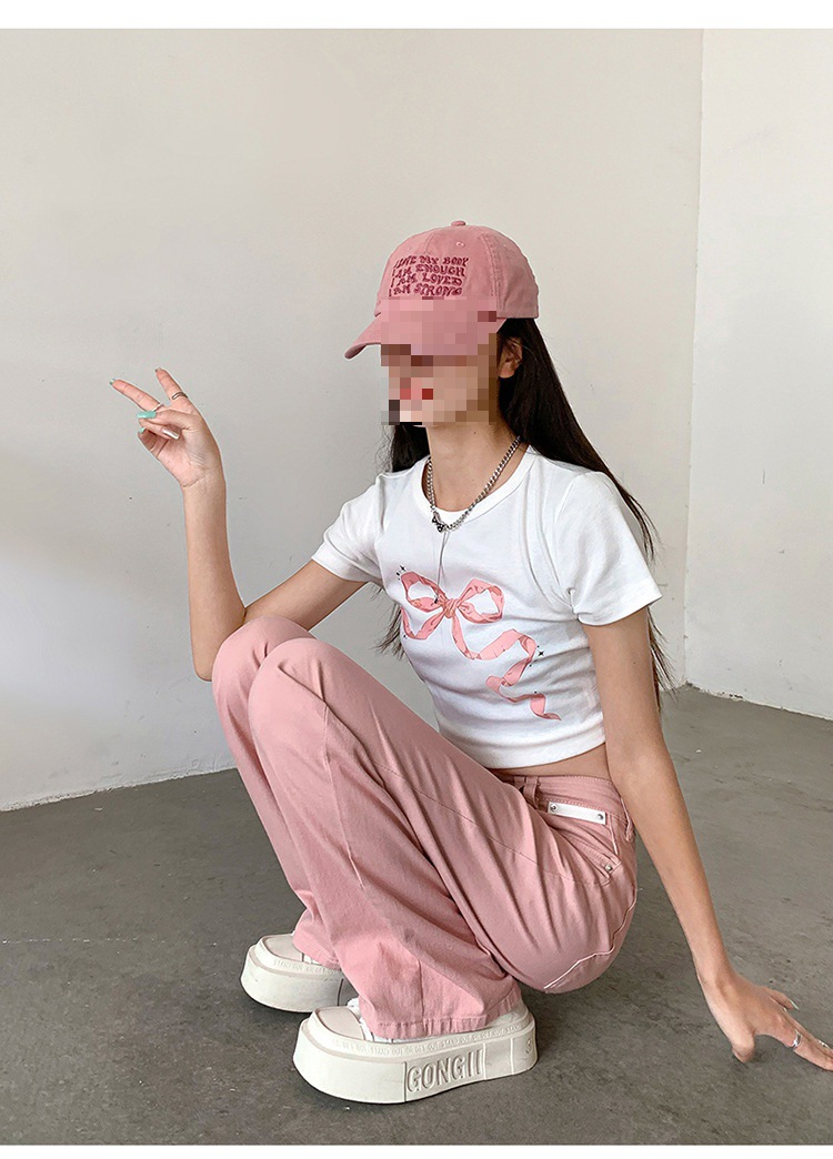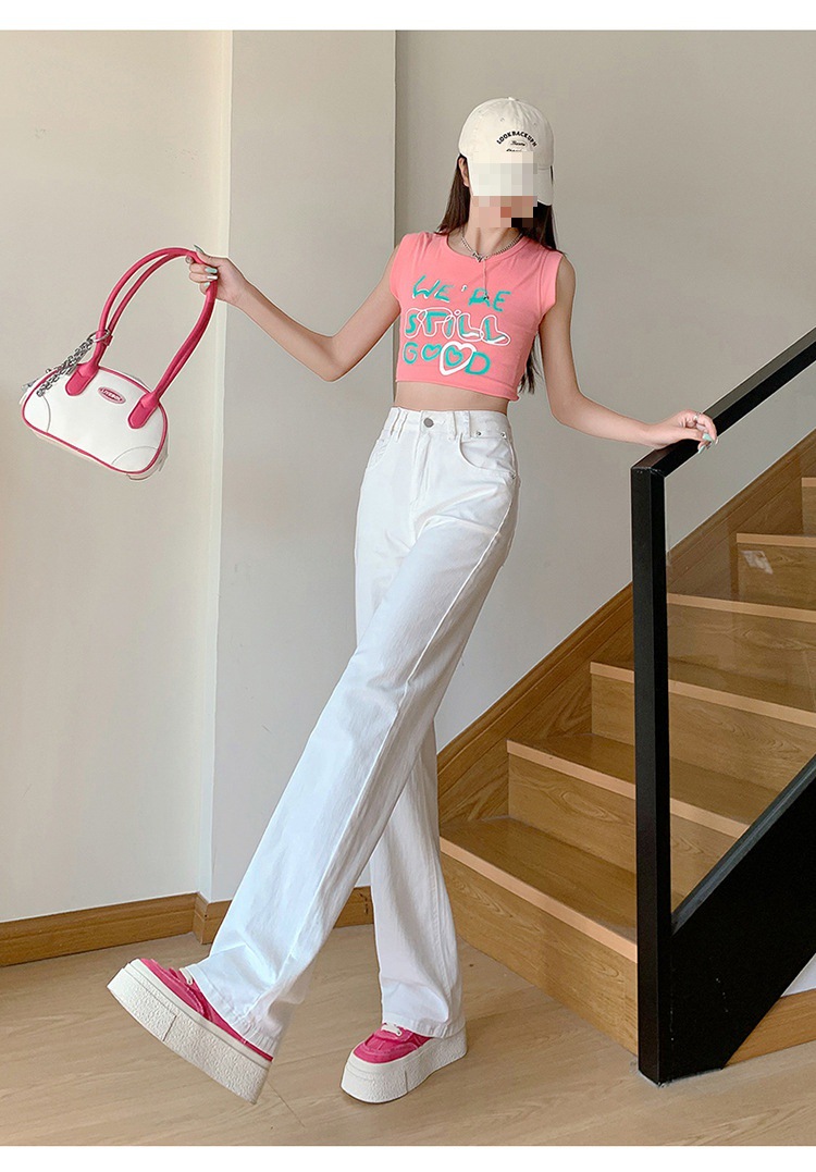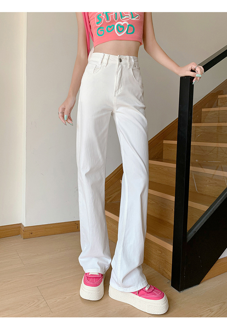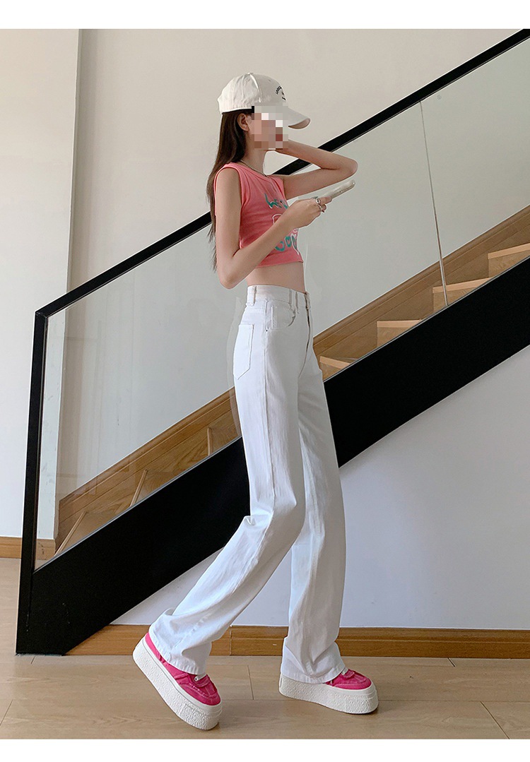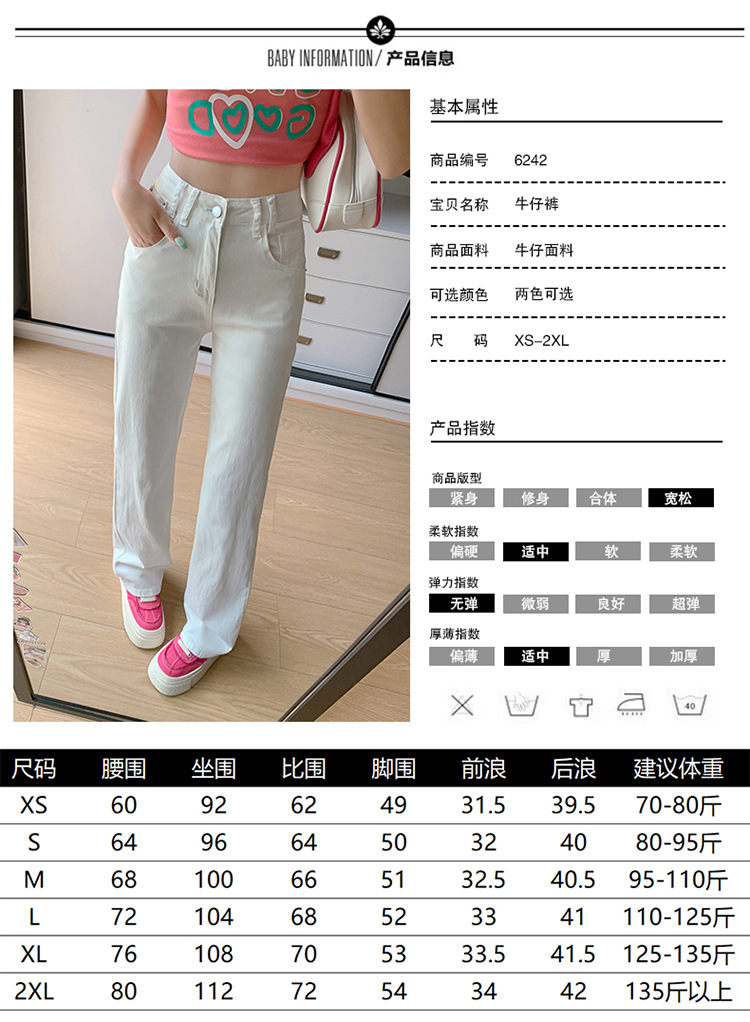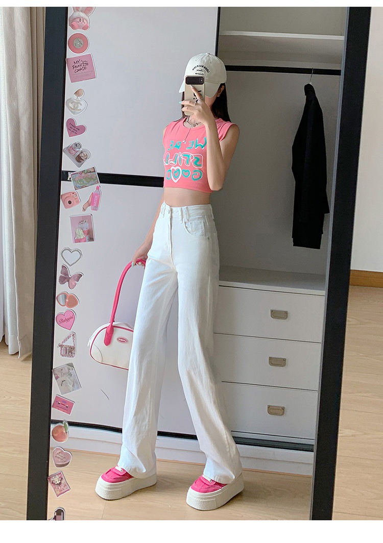 2024 여름 올매치 캐주얼 신선한 핑크 데님 와이드 레그 팬츠 여성의 새로운 하이 웨이스트 슬리밍 스트레이트 팬츠스토어 가기