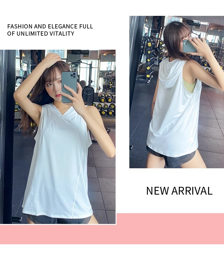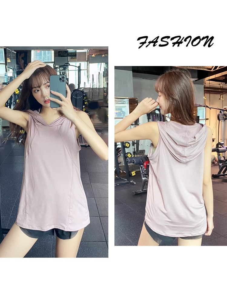 후드 스포츠 조끼 외부 착용 느슨한 여름 얇은 스포츠 피트니스 민소매 빠른 건조 티셔츠 요가 의류 티셔츠 탑