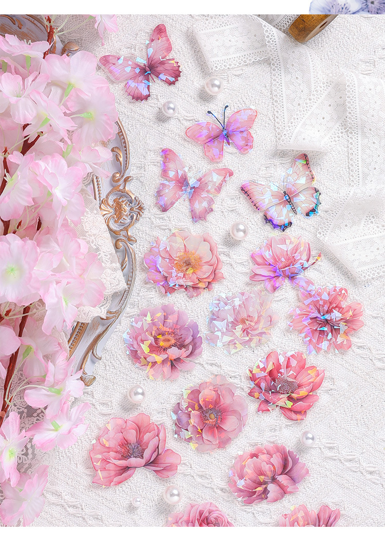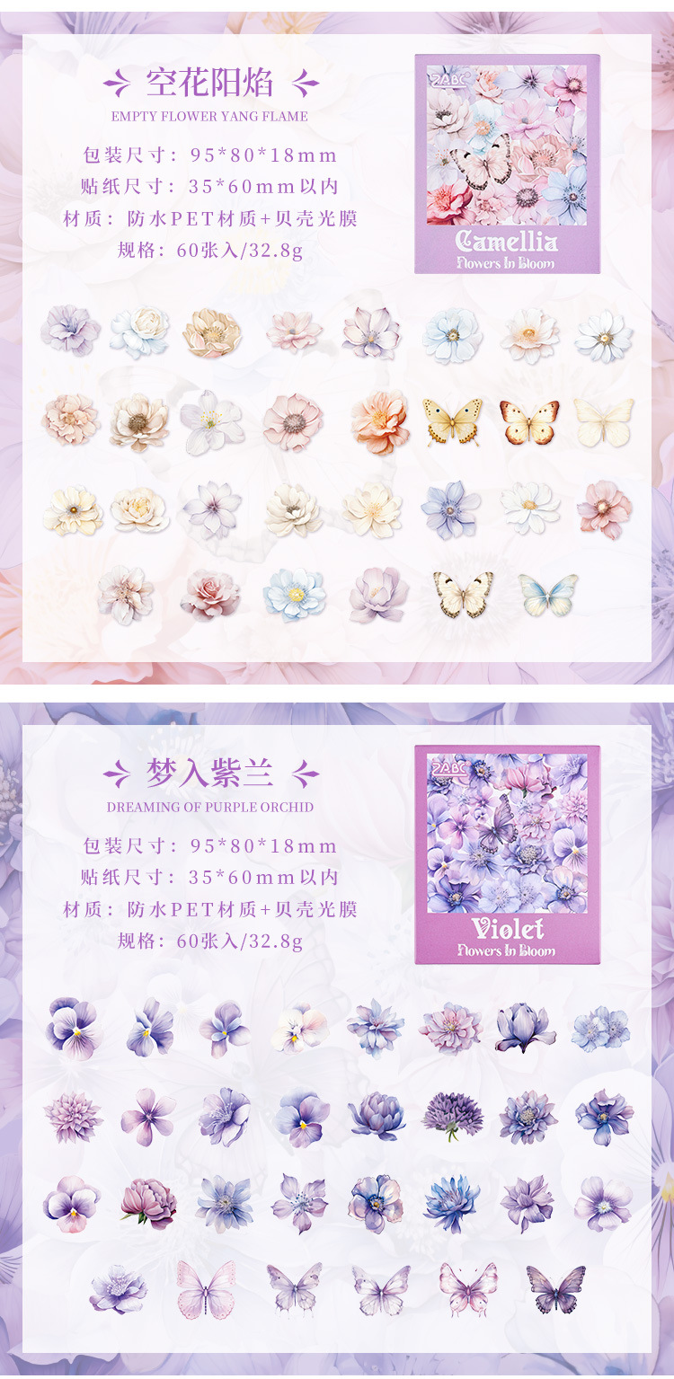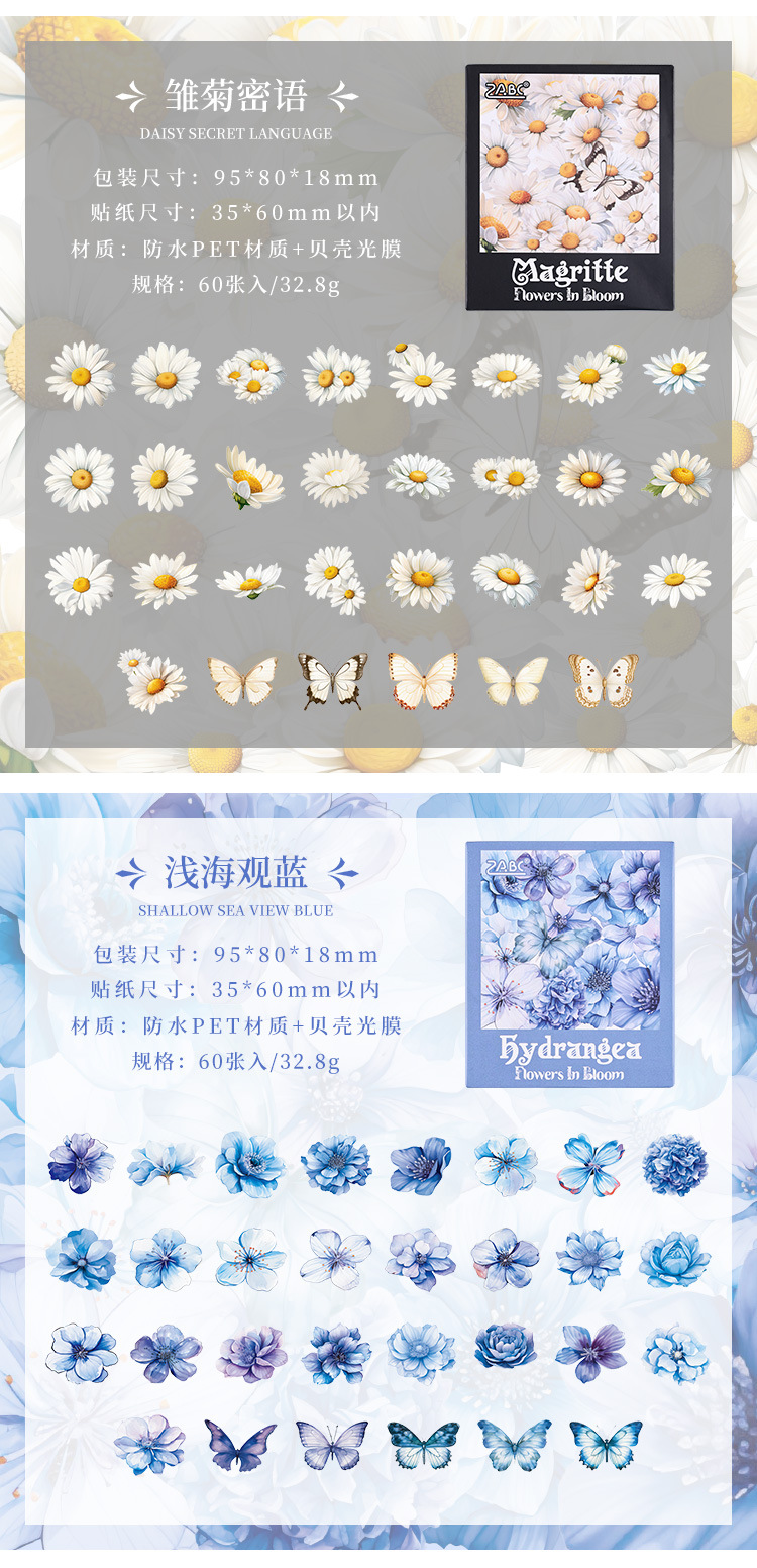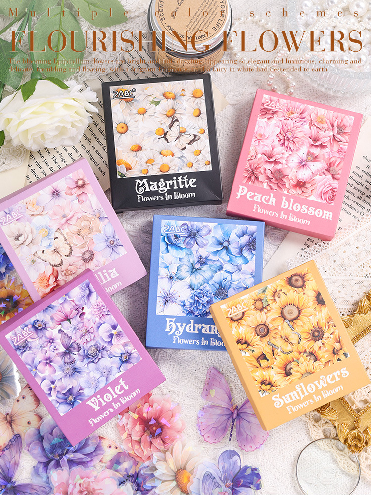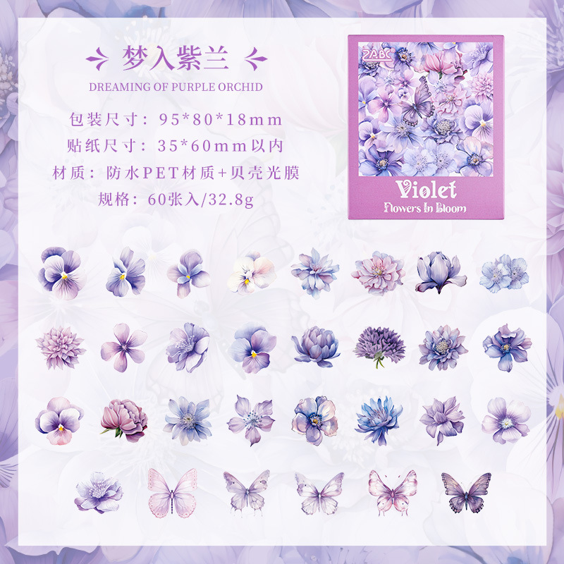 눈 투명 방수 애완 동물 스티커 diy 손 계정 일기 복고풍 꽃 소재 60 박스형 스티커