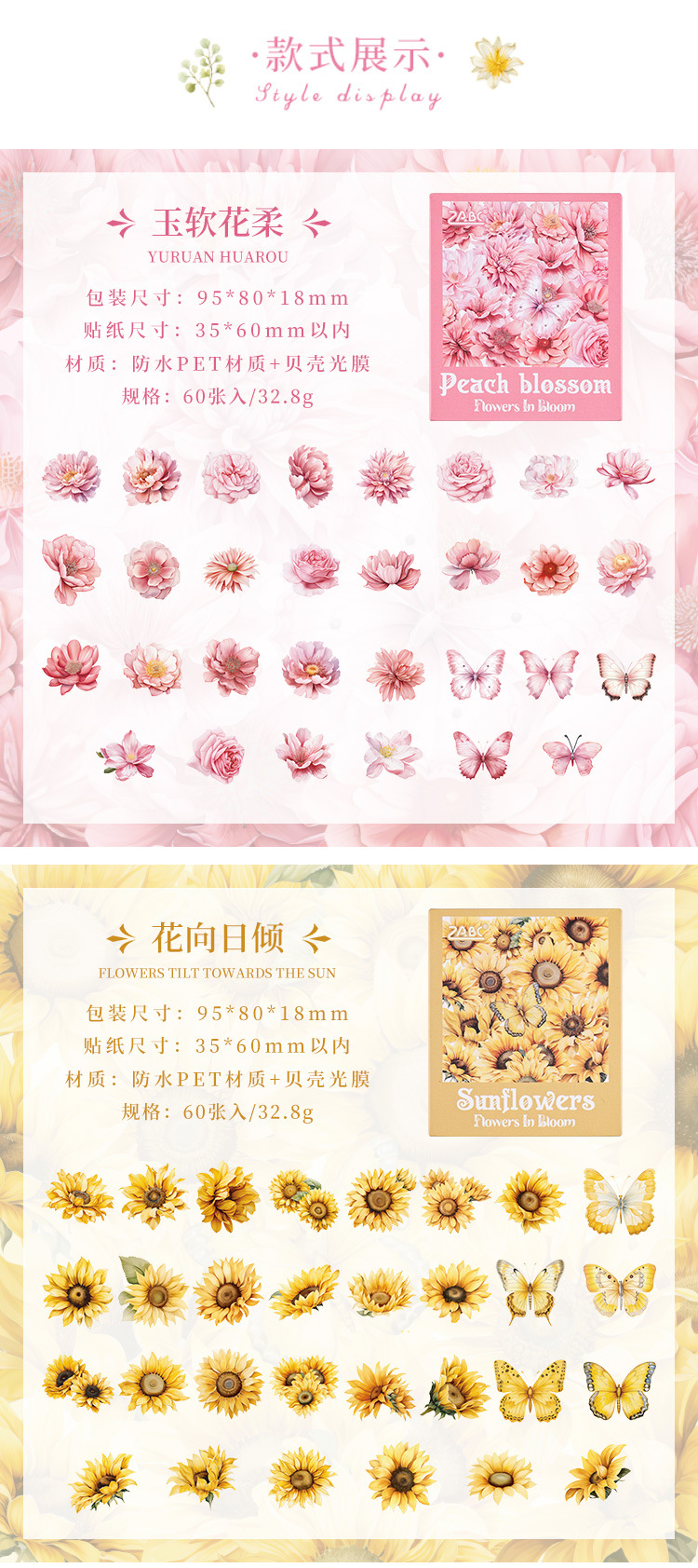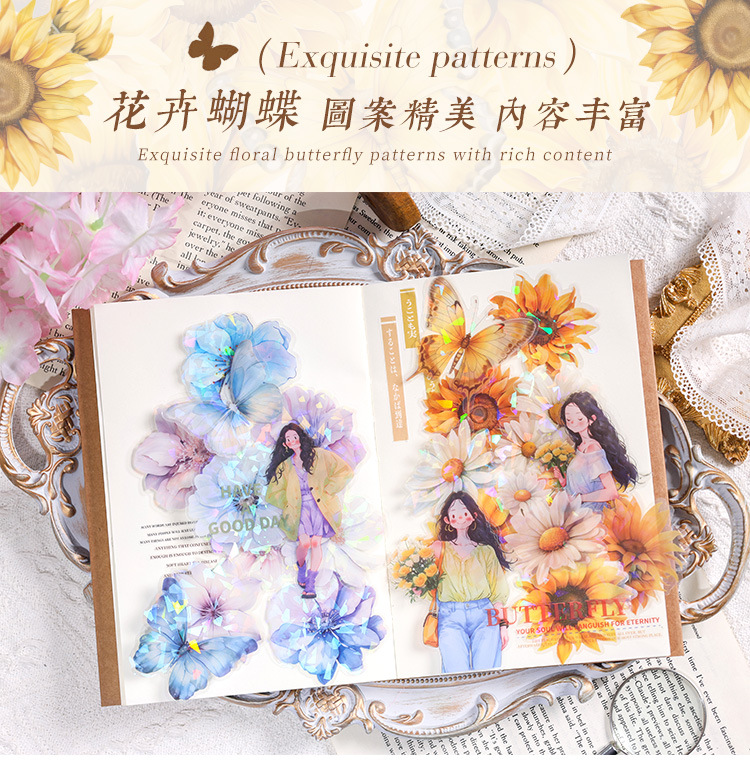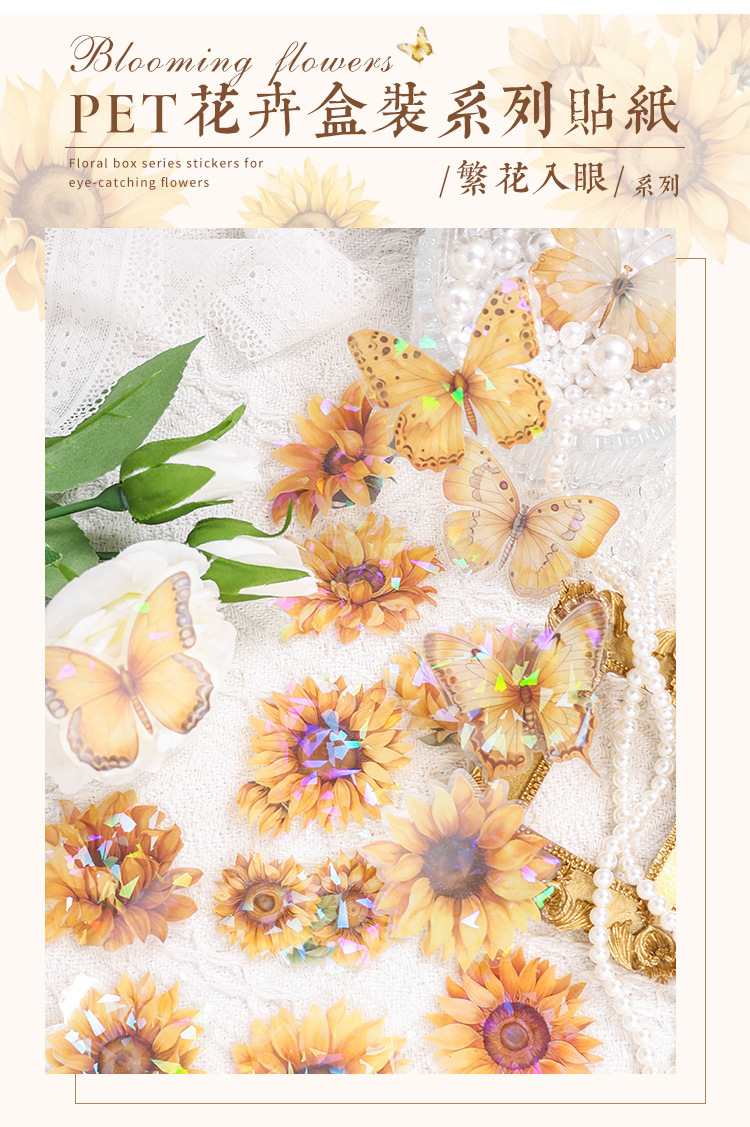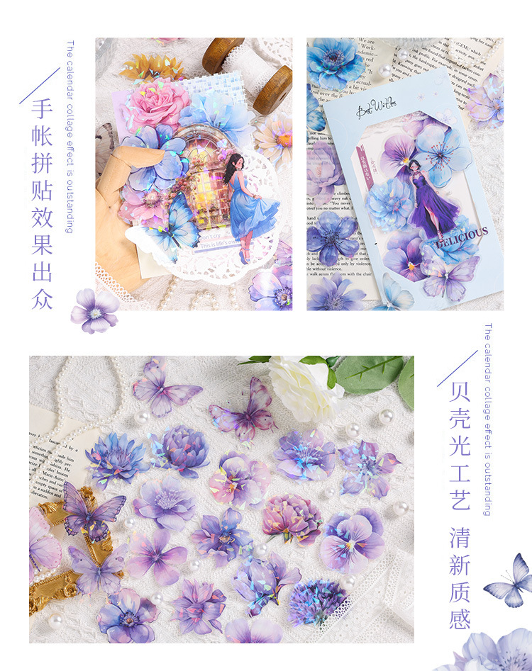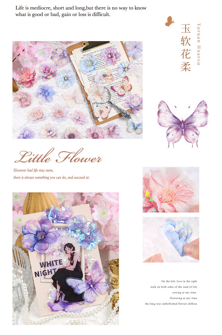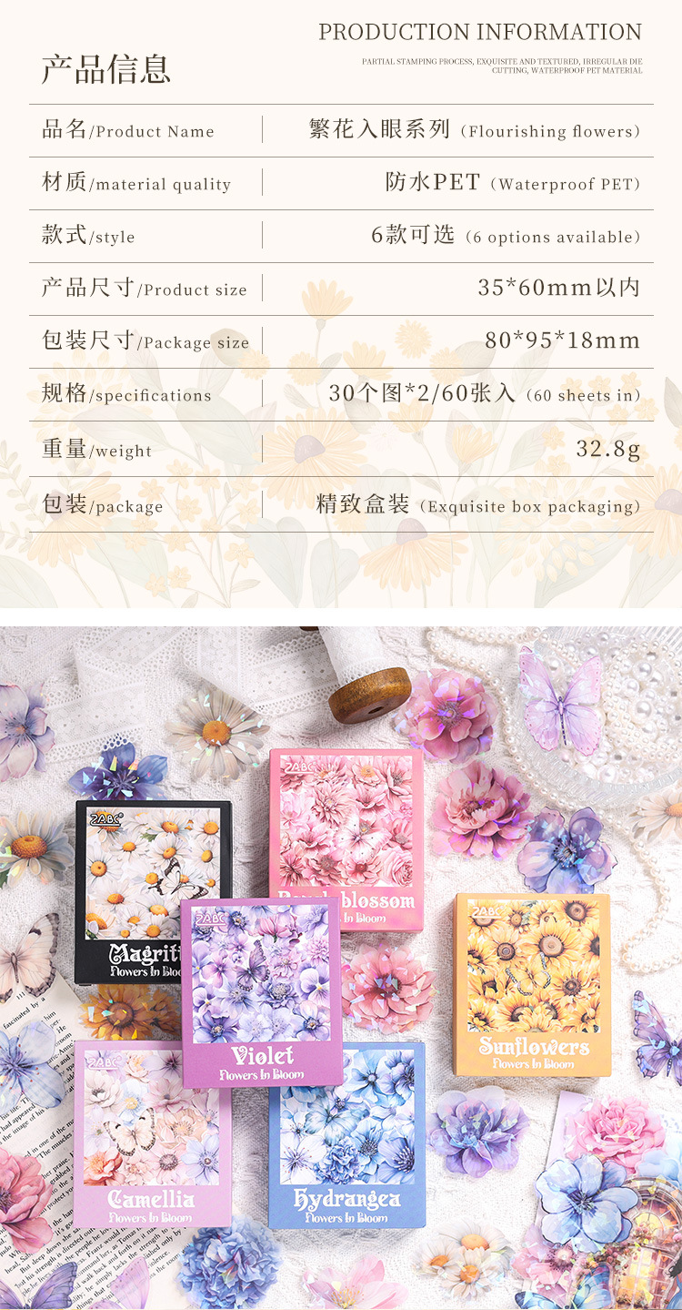 눈 투명 방수 애완 동물 스티커 diy 손 계정 일기 복고풍 꽃 소재 60 박스형 스티커스토어 가기