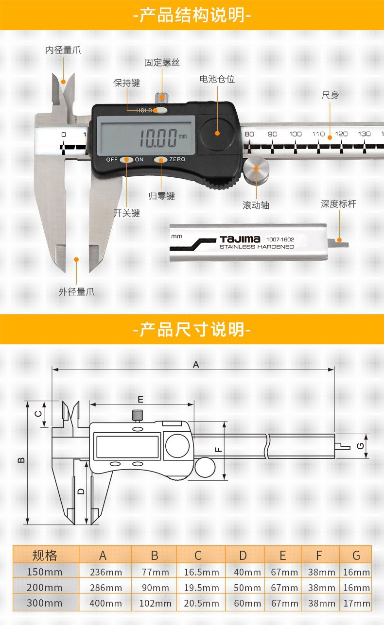 TaJIma Tadao 디지털 캘리퍼 고정밀 가정용 소형 전자 오일 캘리퍼 산업 등급 디지털 디스플레이 카드