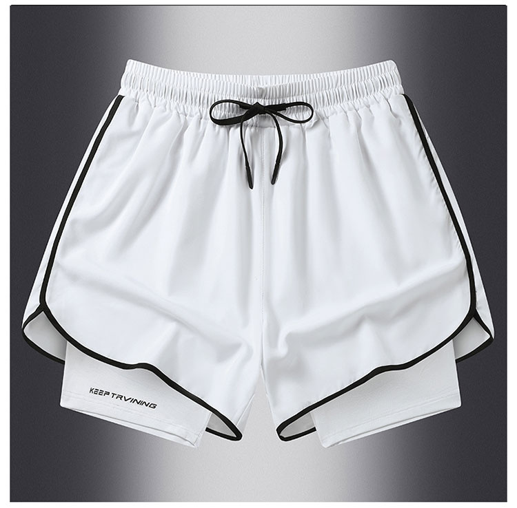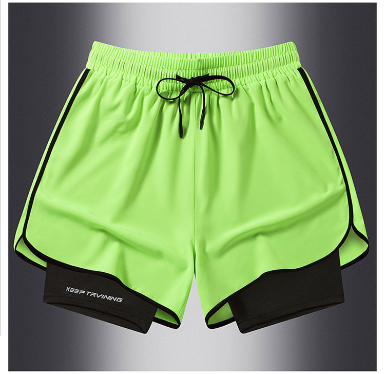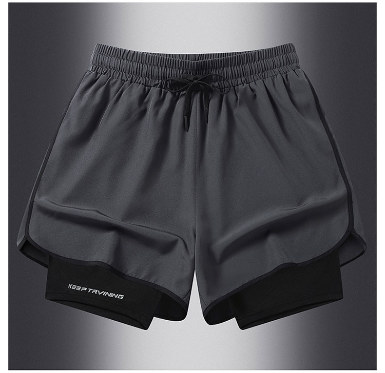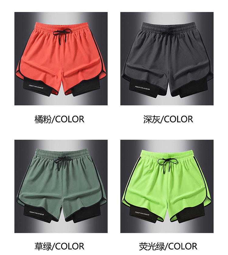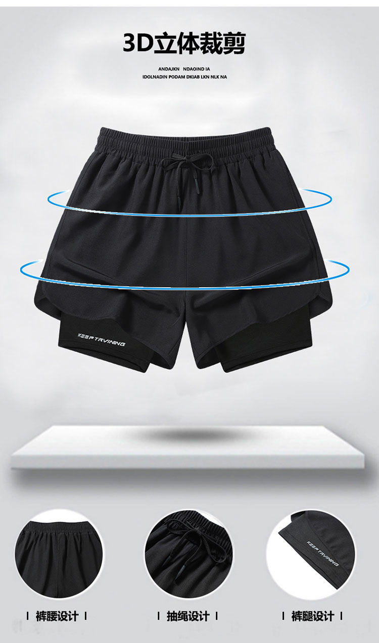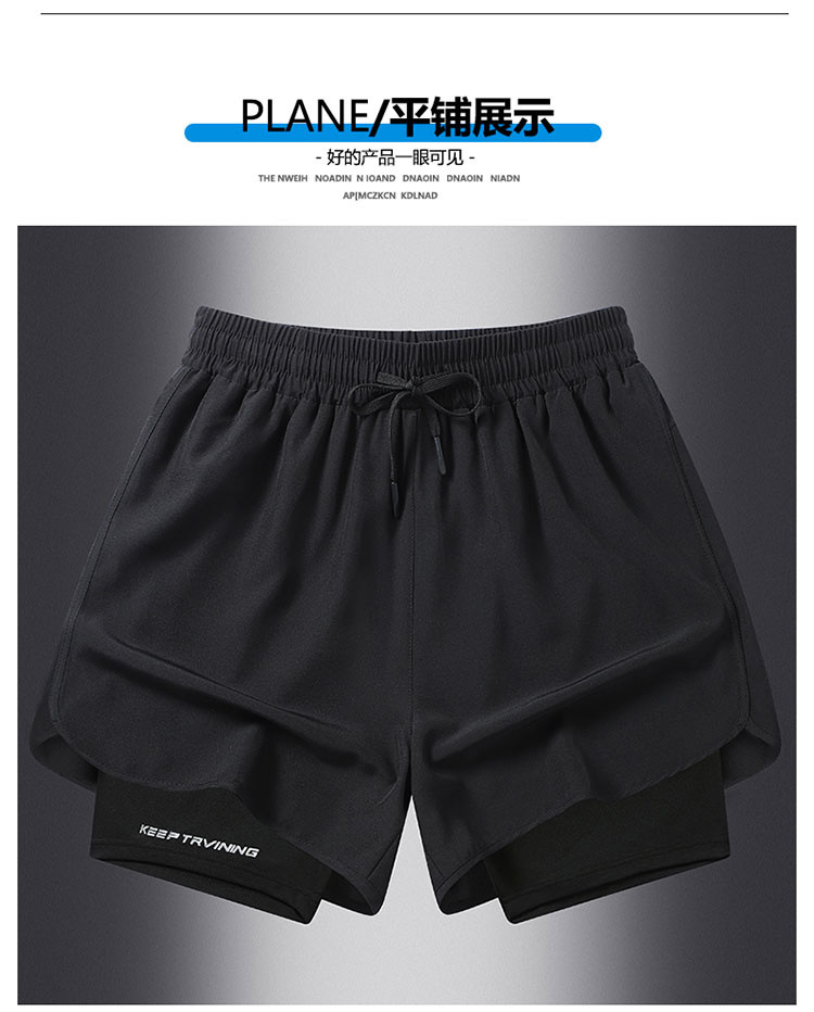 남성용 여름 스포츠 반바지, 남성용 및 여성용 스포츠 런닝 반바지, 속건성 안감, 남성용 페이크 투피스 트레이닝 7부 바지스토어 가기