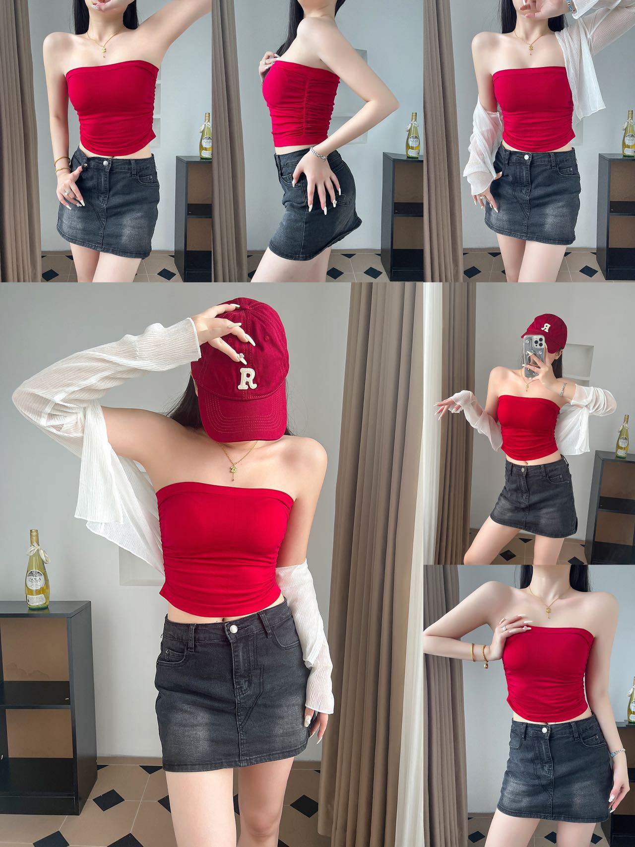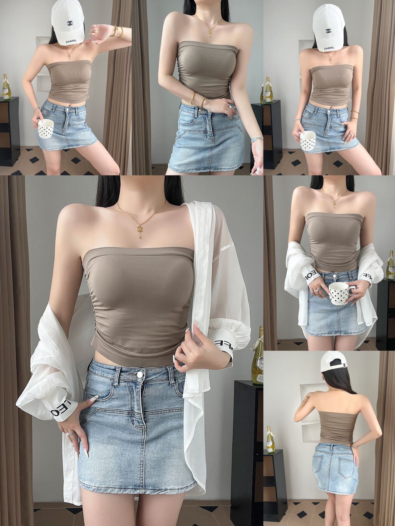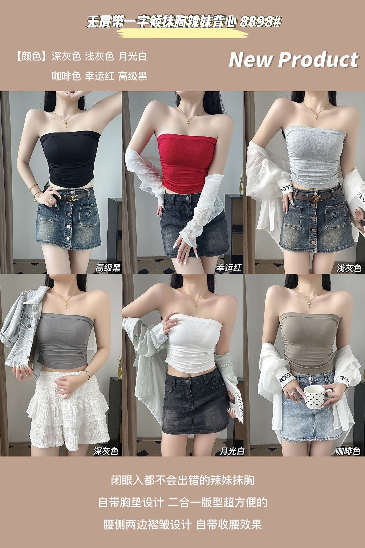 순수한 욕망 스트레치 슬림 핏 슬리밍 스파이스 소녀 외부 착용 쇼트 탑 숄더베이스 (가슴 패드 튜브 탑 여성 조끼)스토어 가기