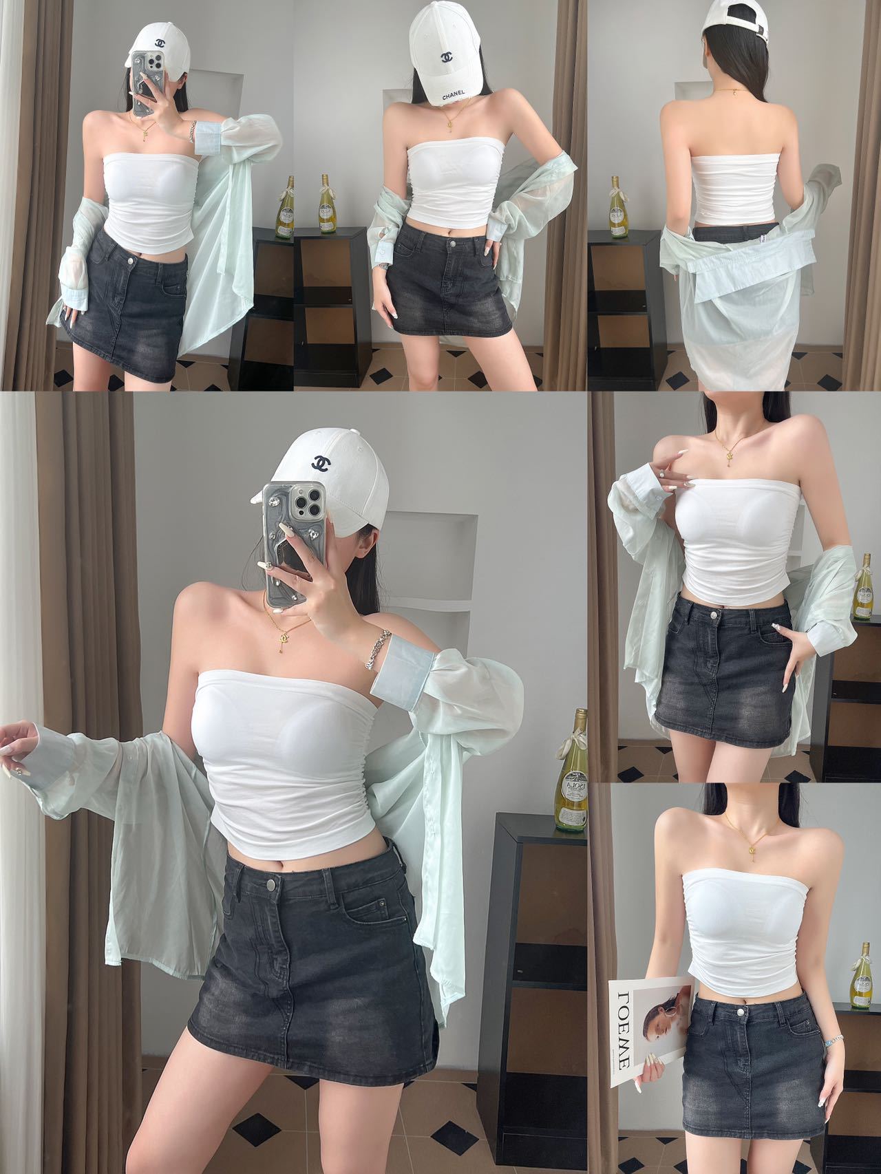 순수한 욕망 스트레치 슬림 핏 슬리밍 스파이스 소녀 외부 착용 쇼트 탑 숄더베이스 (가슴 패드 튜브 탑 여성 조끼)