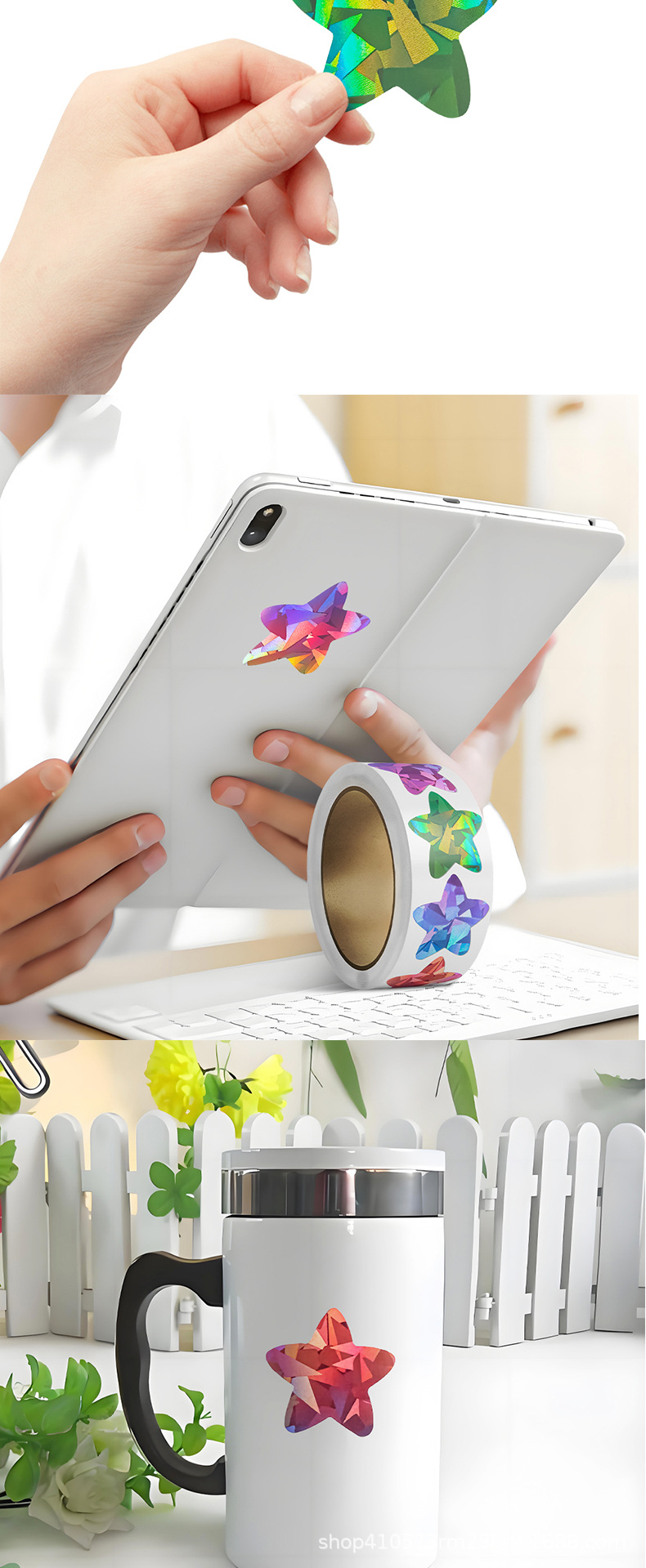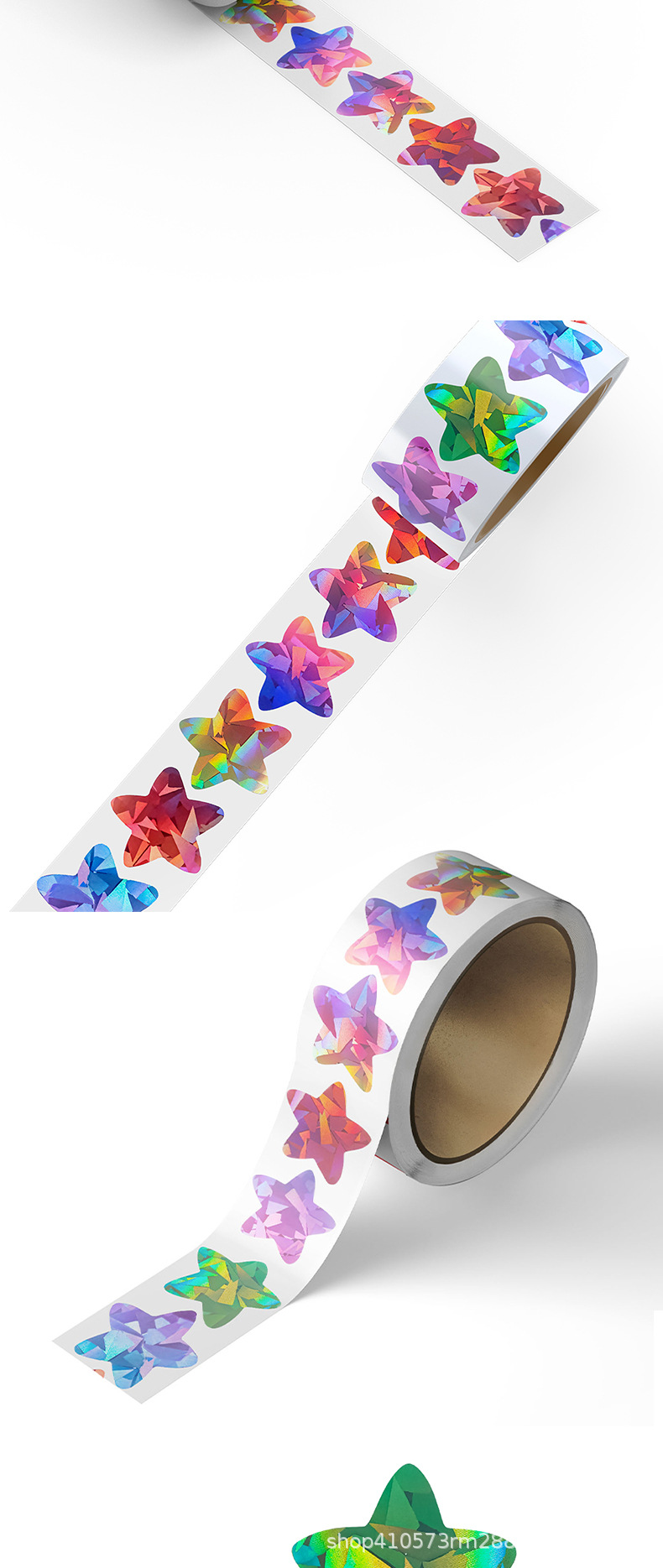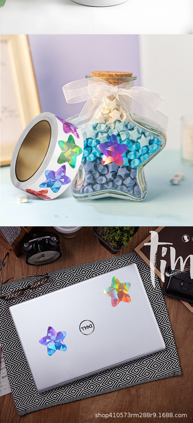 국경 간 컬러 레이저 스타 장식 스티커 눈물 방지 방수 손 계정 선물 상자 밀봉 스티커 접착 라벨