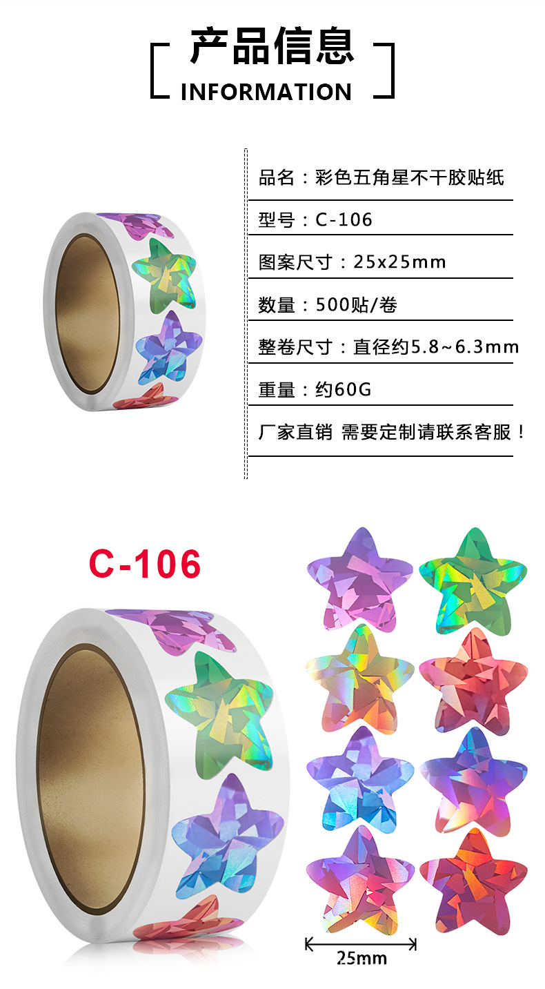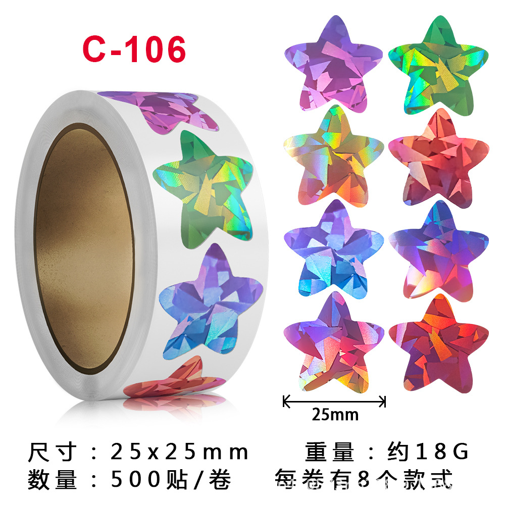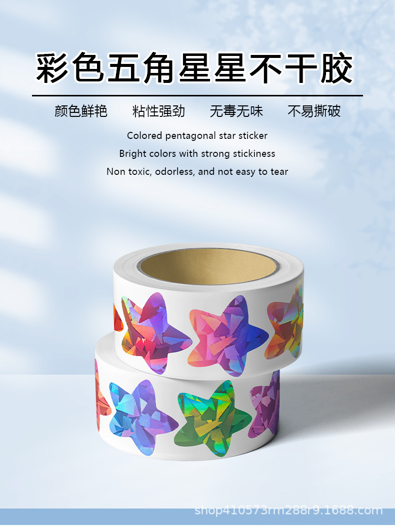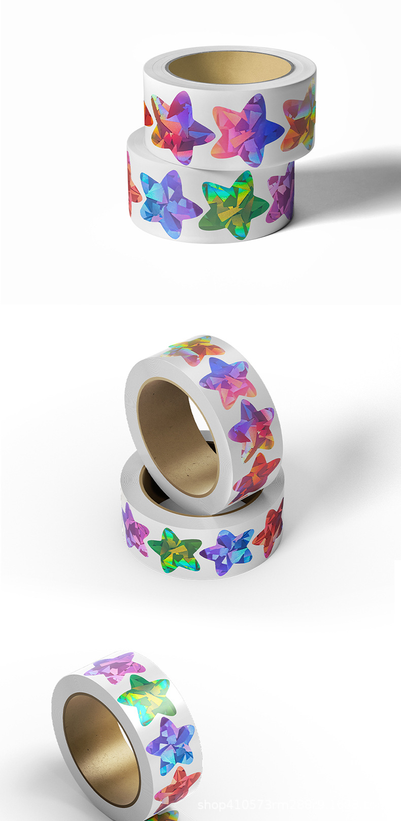 국경 간 컬러 레이저 스타 장식 스티커 눈물 방지 방수 손 계정 선물 상자 밀봉 스티커 접착 라벨