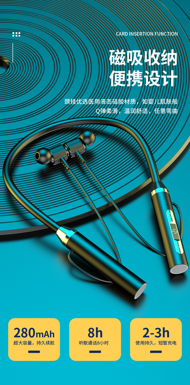 선물용품 도매, 원피스 배송 지원, 기성품 블루투스 무선 이어폰, 넥밴드형 스포츠 이어폰, 듀얼 이어폰, 넥밴드형 이어폰