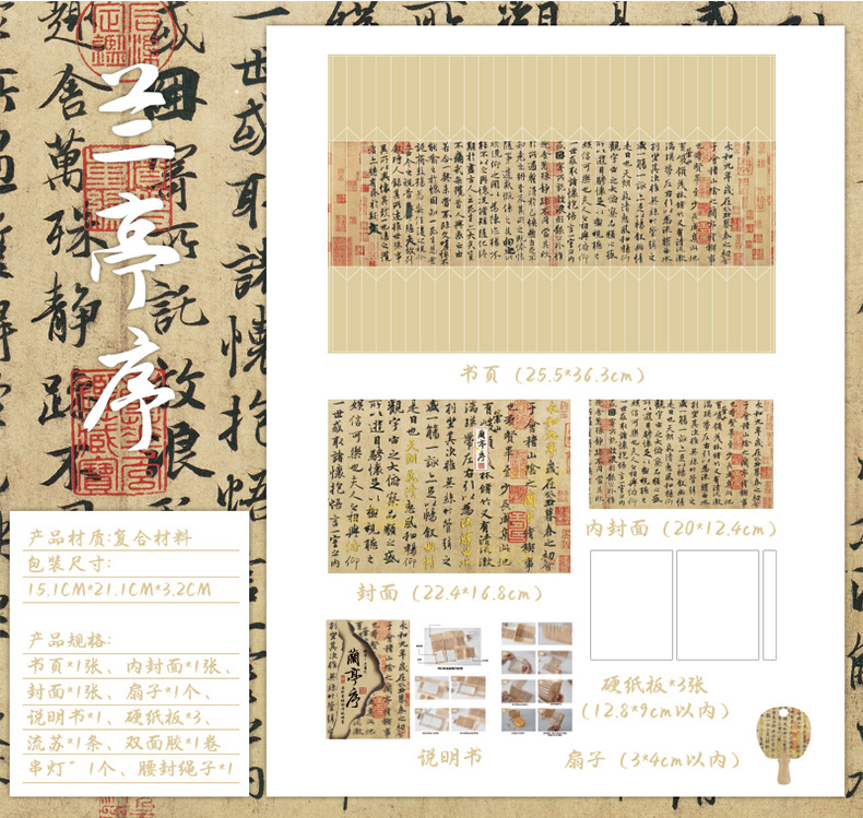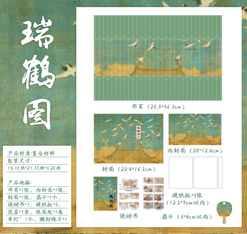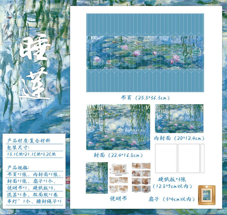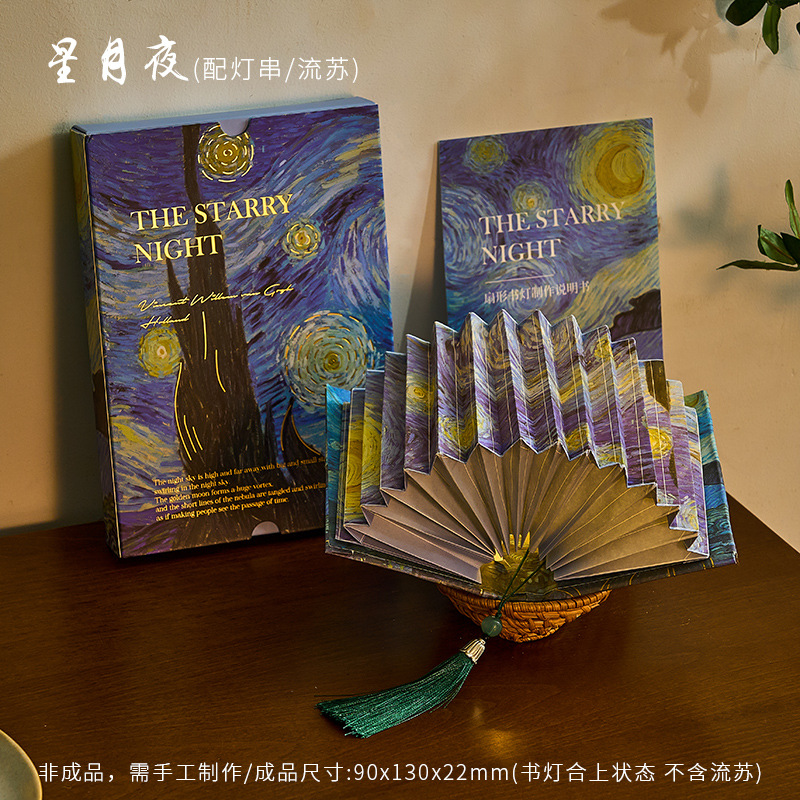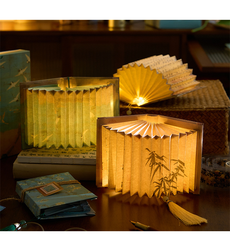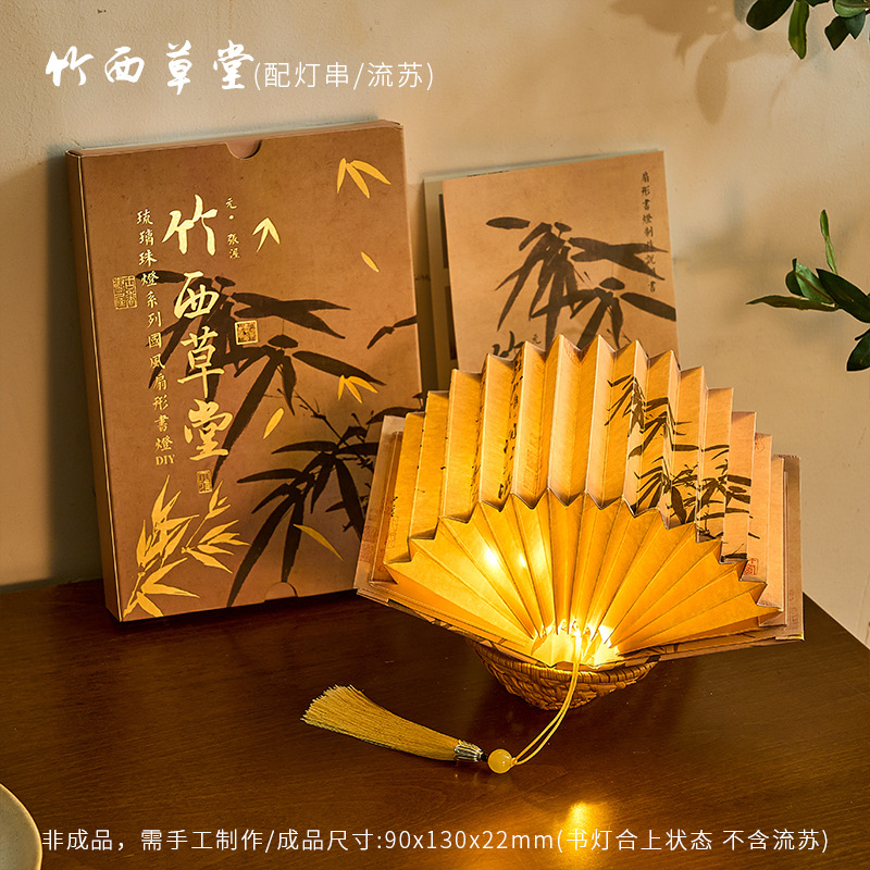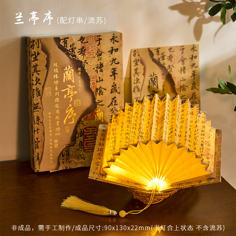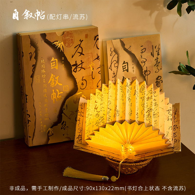 Zao Mo Guofeng 팬 모양의 책 램프 유리 구슬 램프 시리즈 고대 스타일 아트 서예 유명한 그림 DIY 수제 데스크탑 장식품