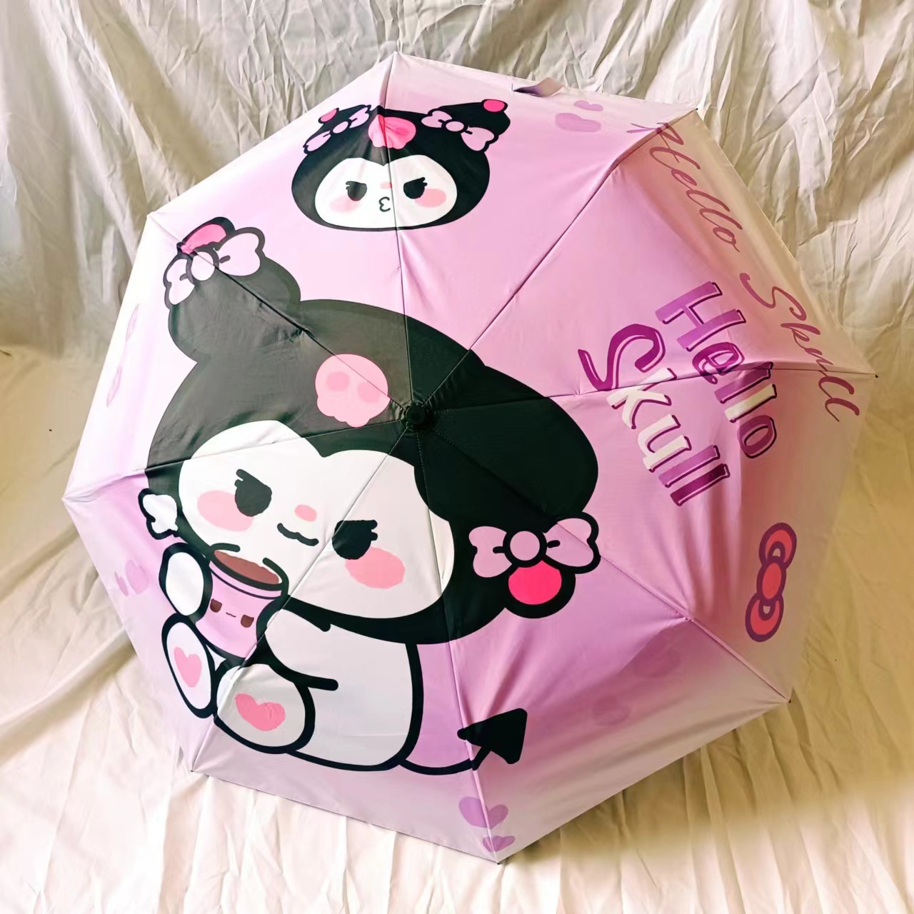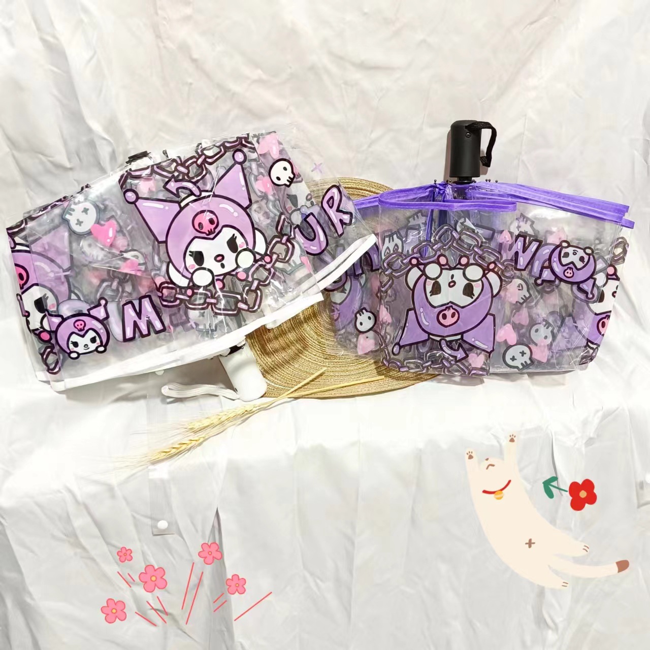 산리오 쿨로미 어린이 맑고 비오는 우산 접히는 여성 자동 검은 태양 우산 햇빛 긴 우산 선 스크린스토어 가기