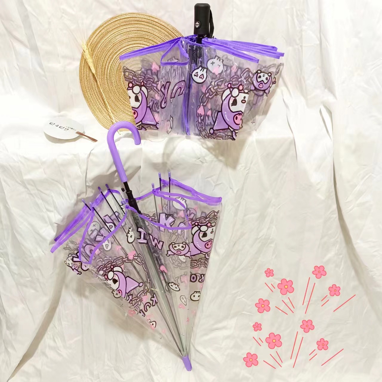 산리오 쿨로미 어린이 맑고 비오는 우산 접히는 여성 자동 검은 태양 우산 햇빛 긴 우산 선 스크린