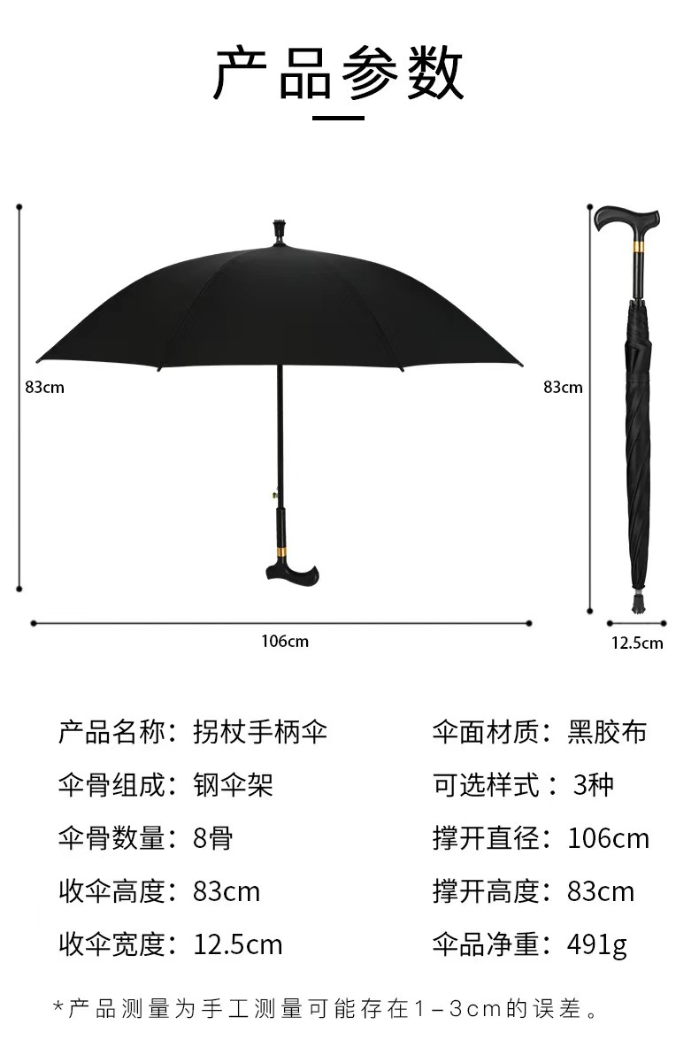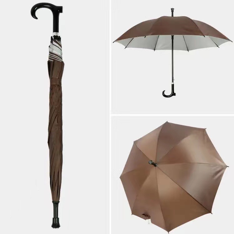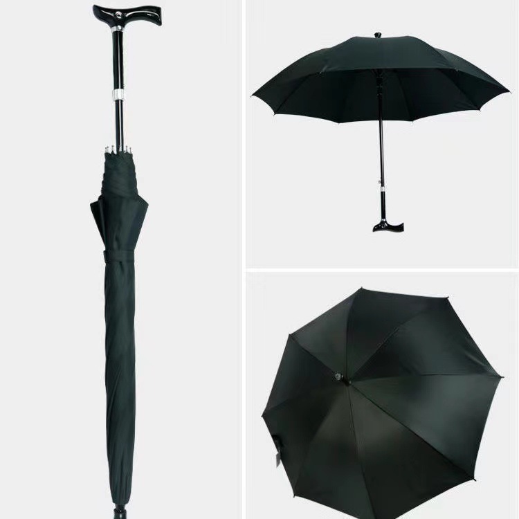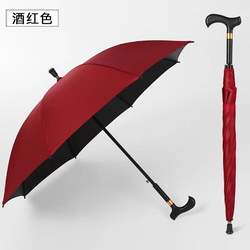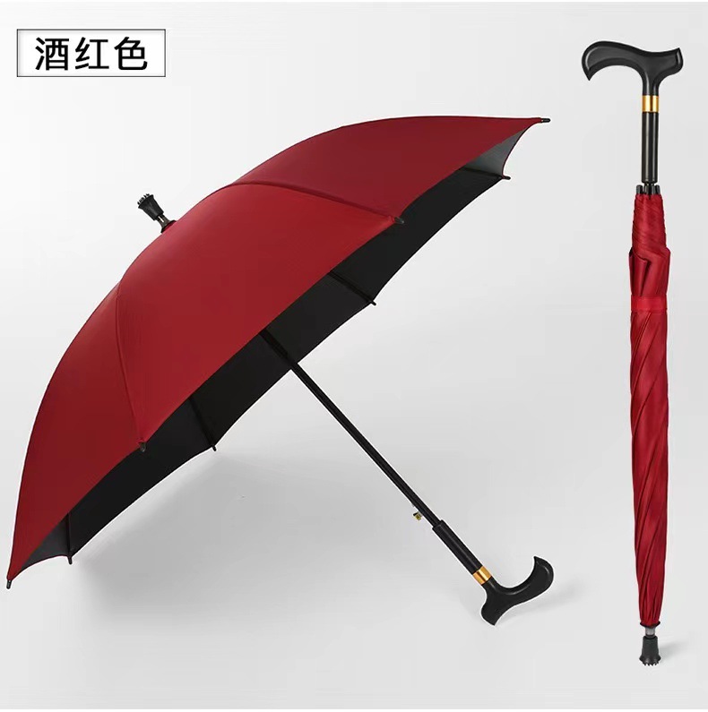 노인 긴 손잡이를위한 우산 강화 우산 지팡이 우산 맑고 비오는 이중 사용 안티 슬립 등반 다기능 워킹 스틱 햇살 우산
