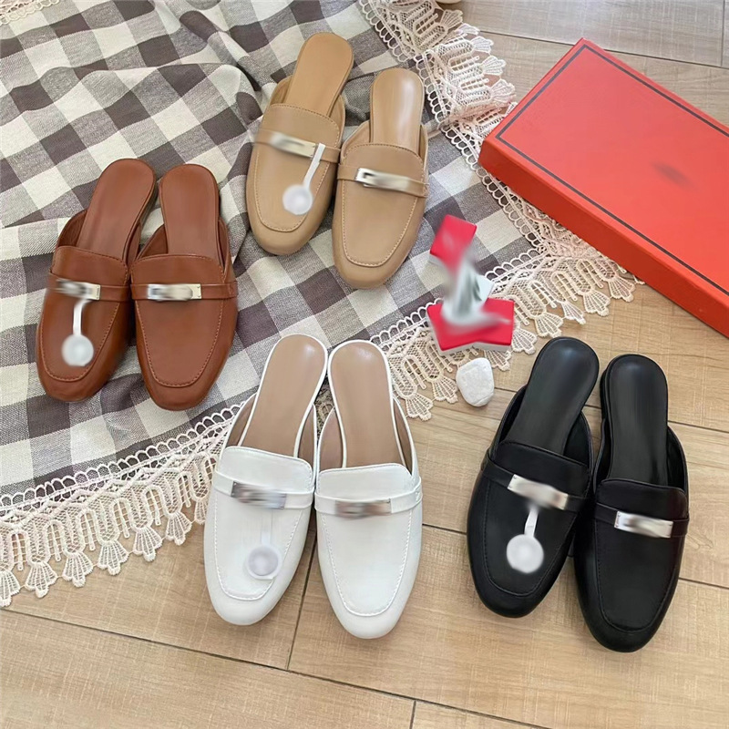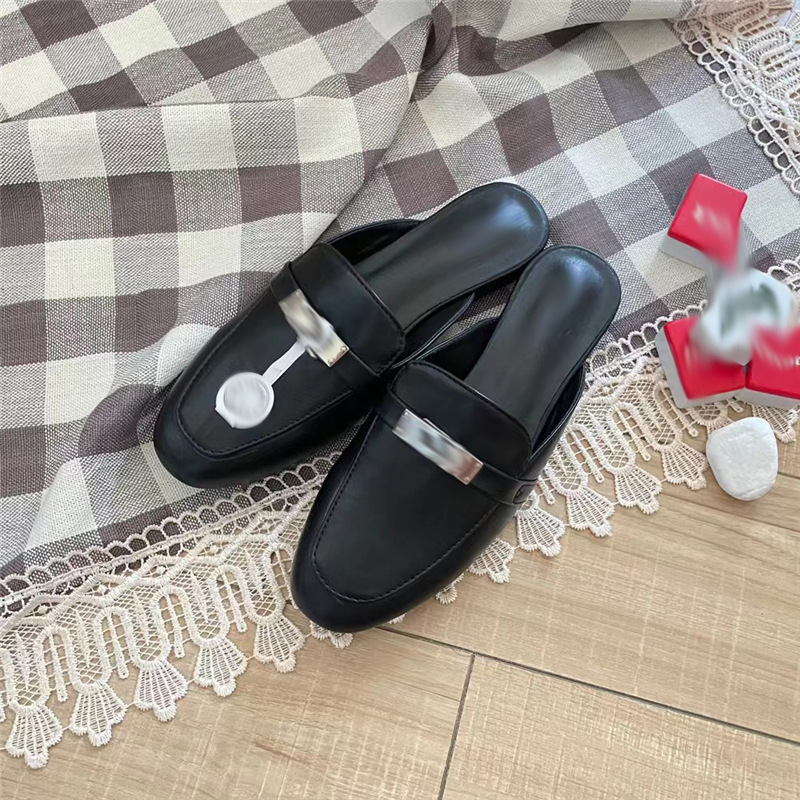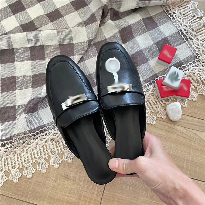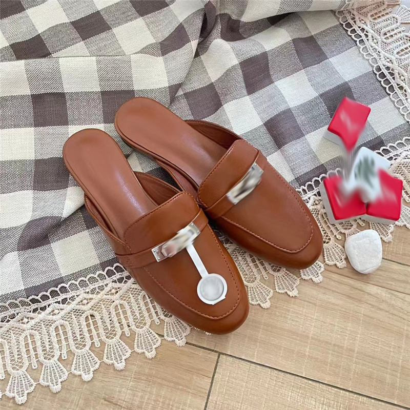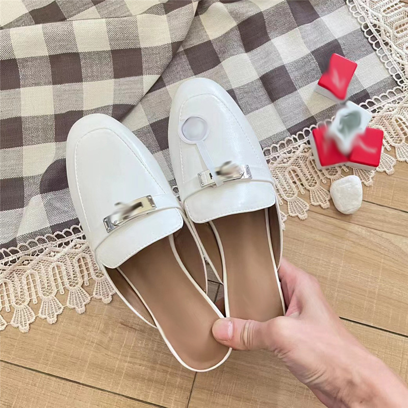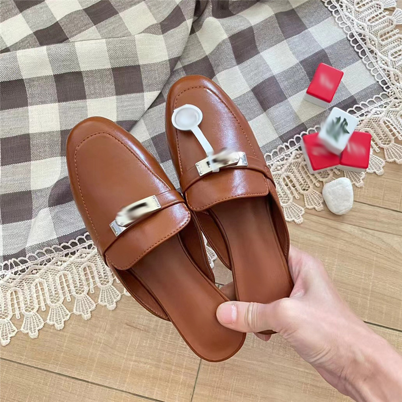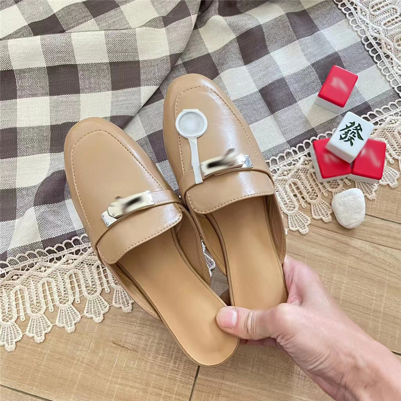 상품! 하이 버전 2023 새로운 스타일 바오터우 슬리퍼 여성용 플랫 메탈 버클 H 게으른 슬립 온 슬리퍼