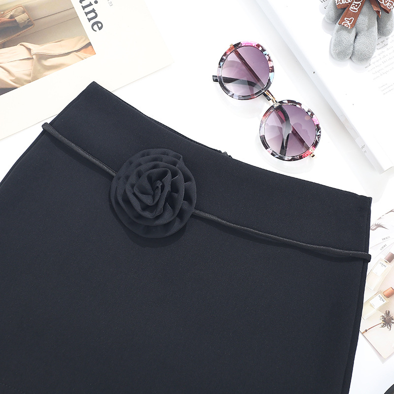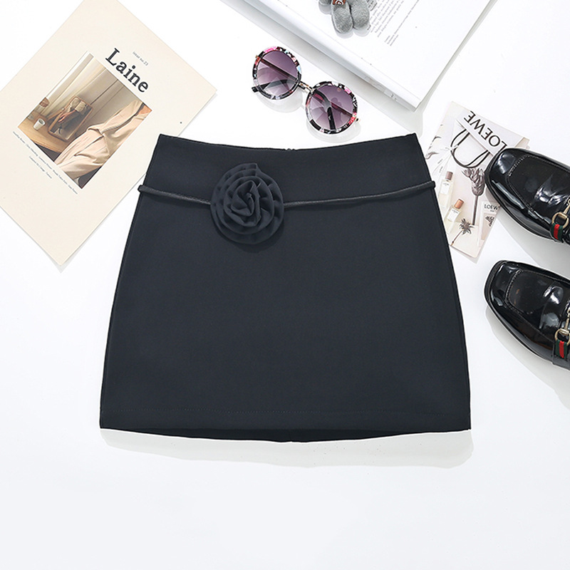 홍콩 스타일 빈티지 꽃 작은 가방 치마 디자인 센스 블랙 슬림 핏 슬리밍 스커트 틈새 스파이스 소녀 탄성 스커트 9097