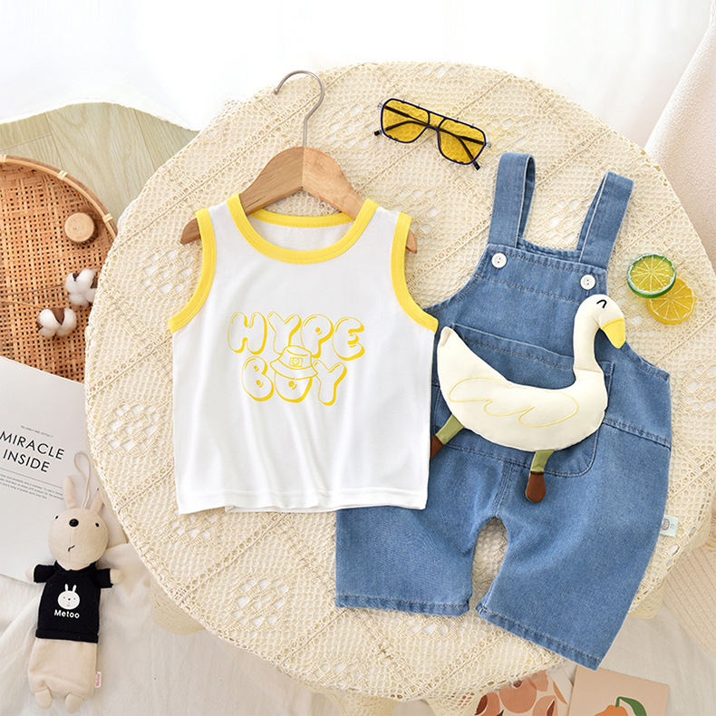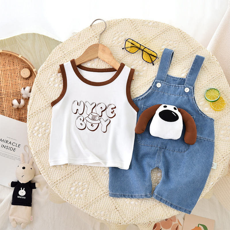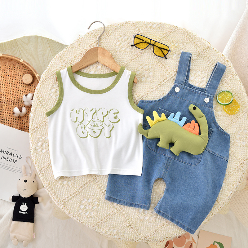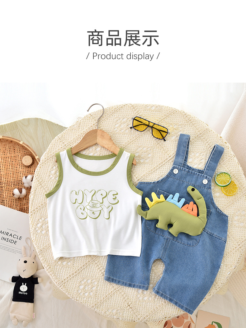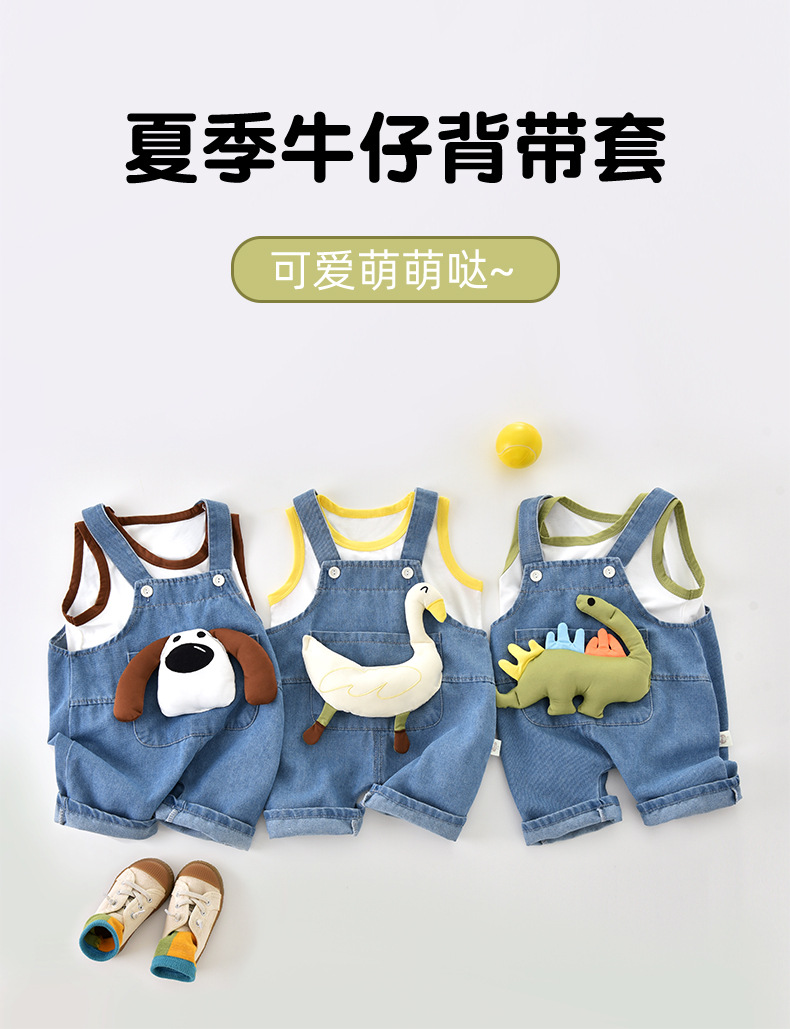 아기띠, 민소매 여름 데님 슈트, 귀여운 아기 패션 만화 에어컨 슈트, 어린이 여름 아우터웨어스토어 가기