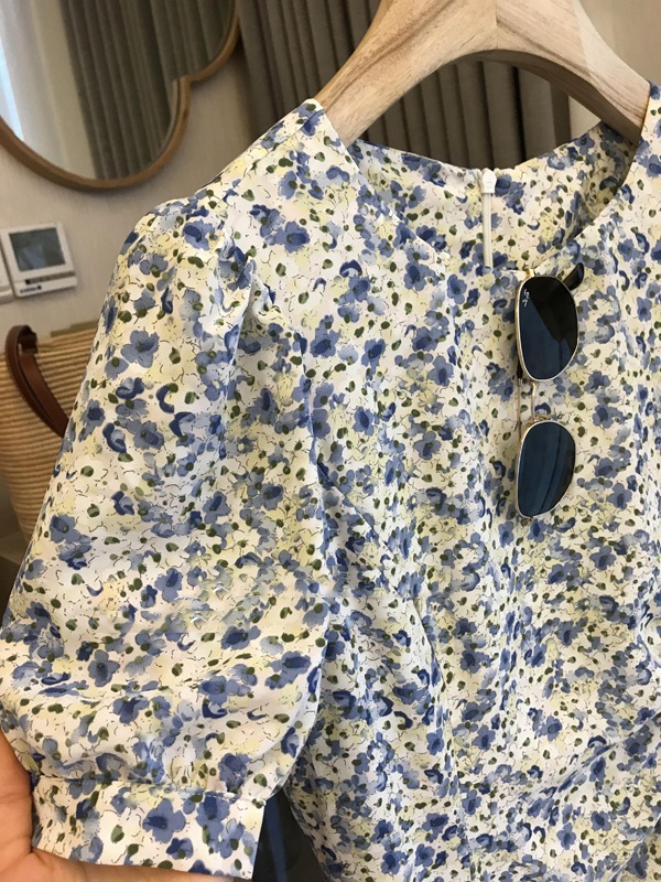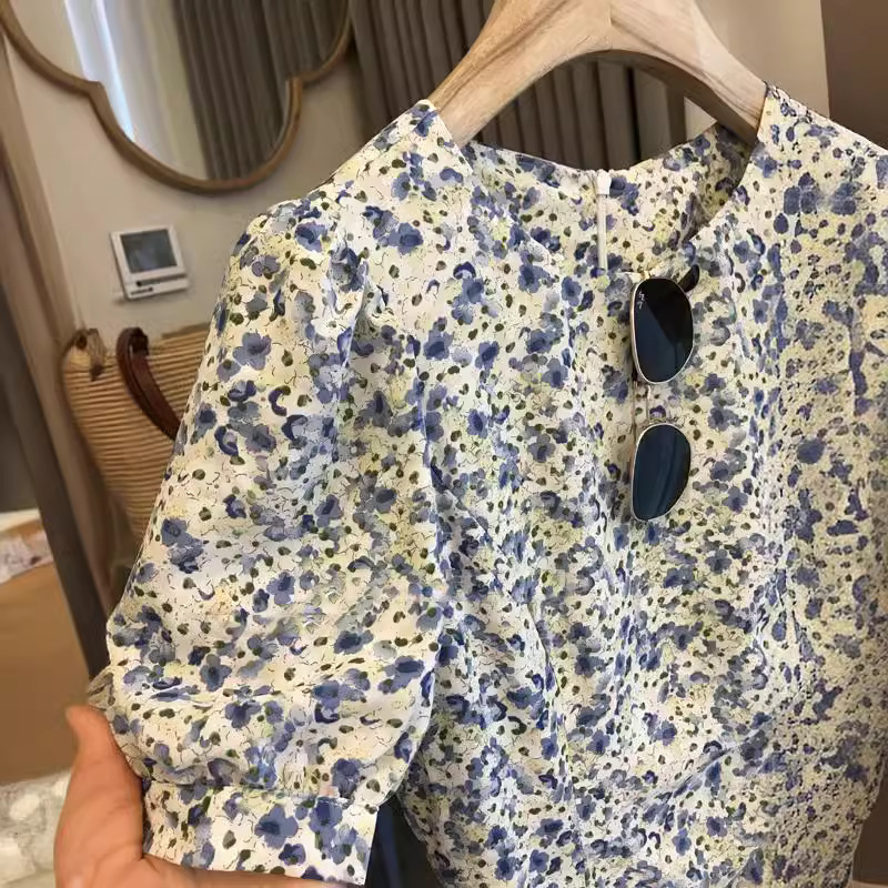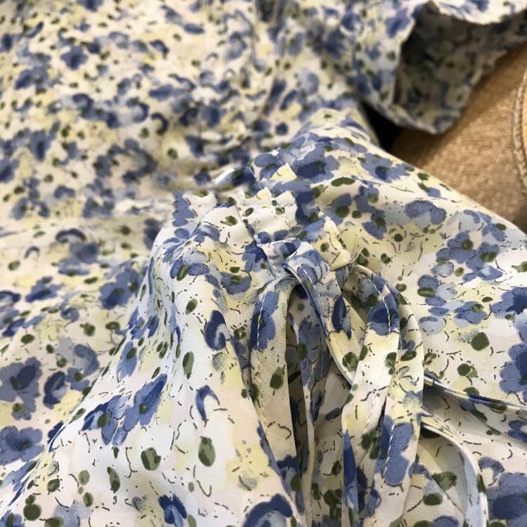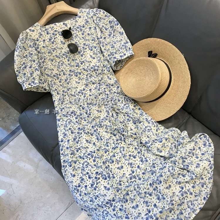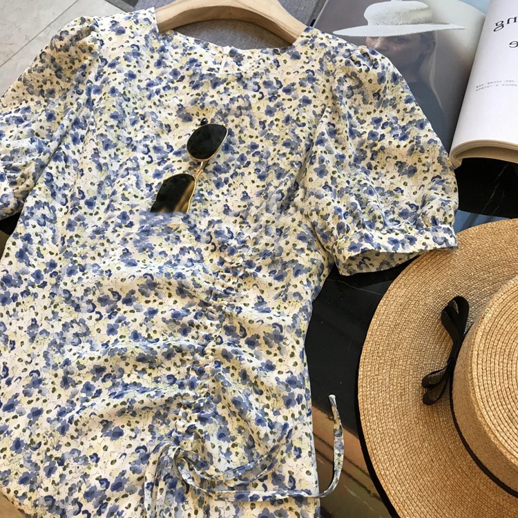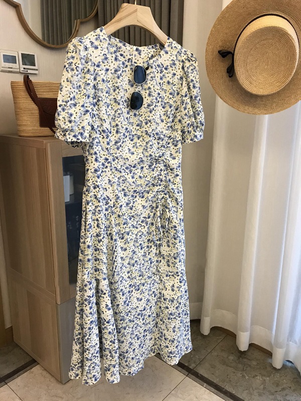 外贸出口单!高品质花色!法式气质收腰显瘦抽绳碎花茶歇连衣裙女