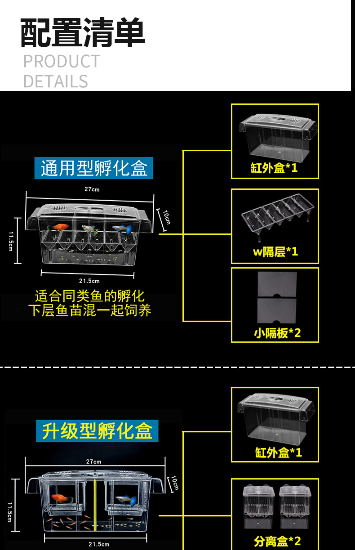 • 27cm 고립 된 먹이 상자 (작은 물고기를 부화 할 수 없음)
