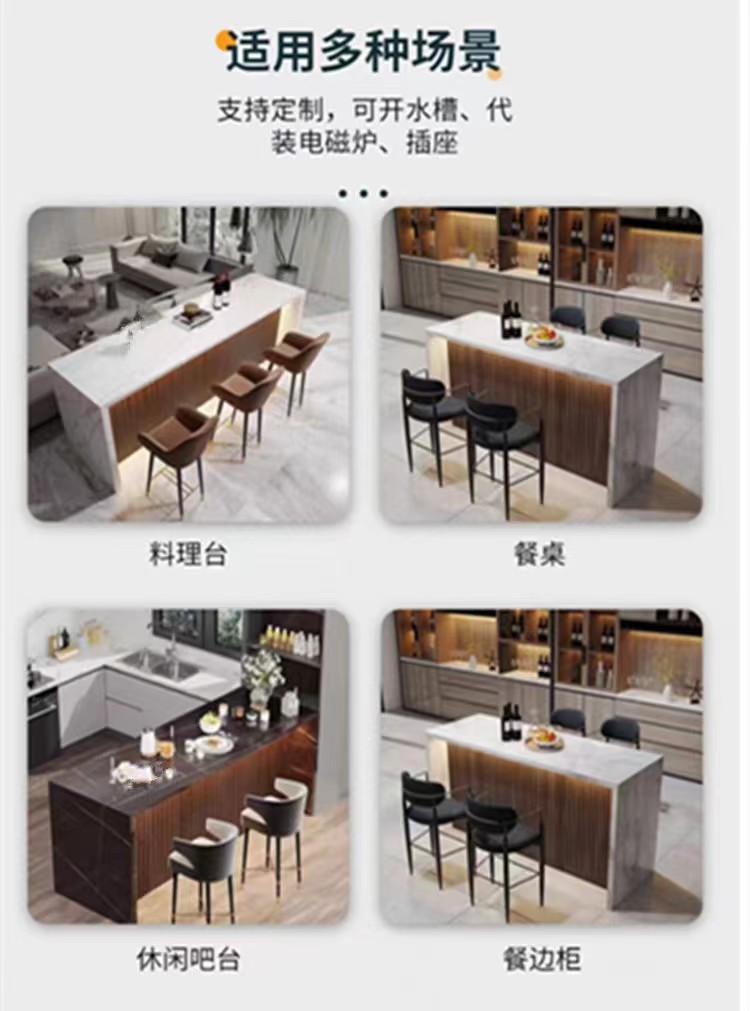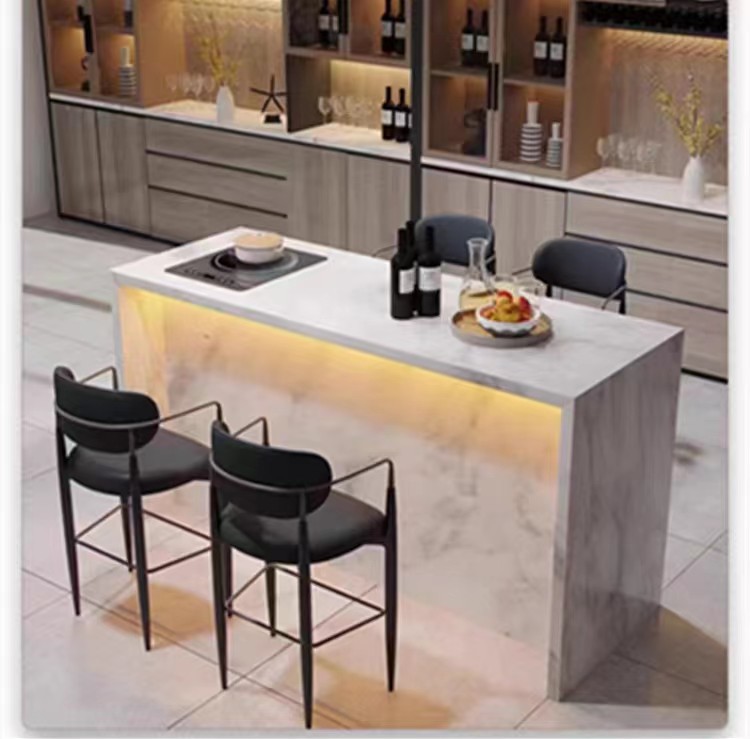 가정용 대리석 바위 보드 섬 테이블 식탁 통합 오픈 주방 거실 소파 후면 파티션 작은 바 카운터
