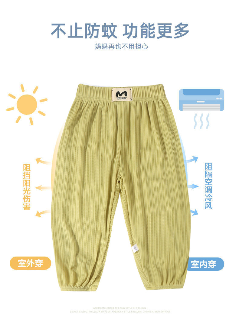 어린이 모기 방지 바지 여름 아이스 실크 흔들리는 바지 소년 소녀 얇은 비리스 캐주얼 바지 아기 외부 바지스토어 가기