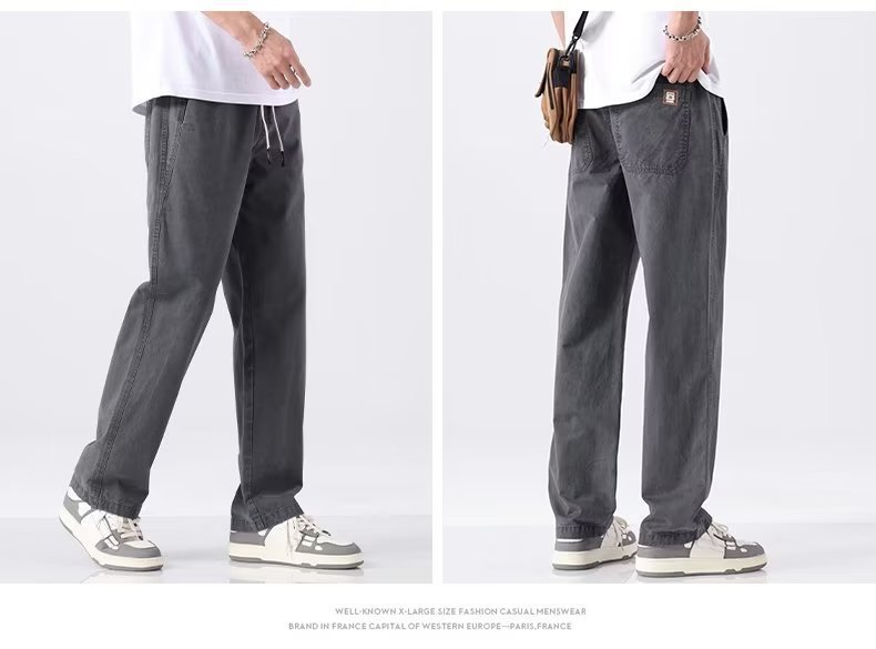 유럽 버전 2024 남자 캐주얼 바지 여름 느슨한 넓은 다리 바지 레트로 올매치 작업복 데님 스트레이트 롱 바지스토어 가기