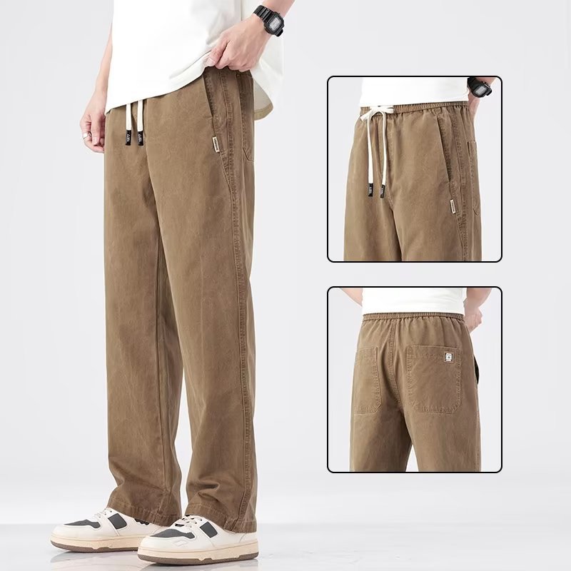 유럽 버전 2024 남자 캐주얼 바지 여름 느슨한 넓은 다리 바지 레트로 올매치 작업복 데님 스트레이트 롱 바지