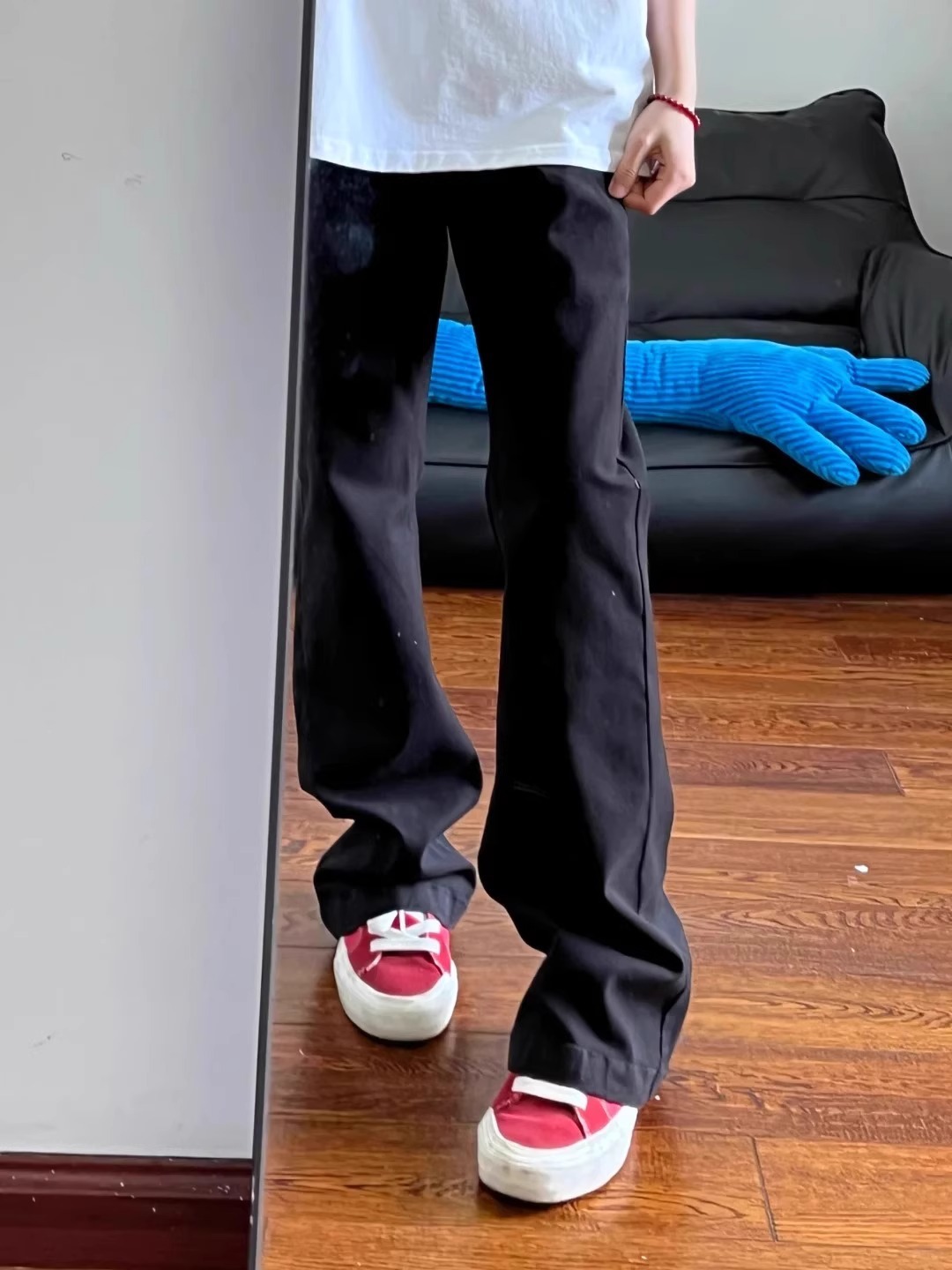 미국 스타일 느슨한 슬림 모양 블랙 캐주얼 바지 여성 여름 얇은 작은 낮은 허리 좁은 버전 작업복 스트레이트 바지스토어 가기